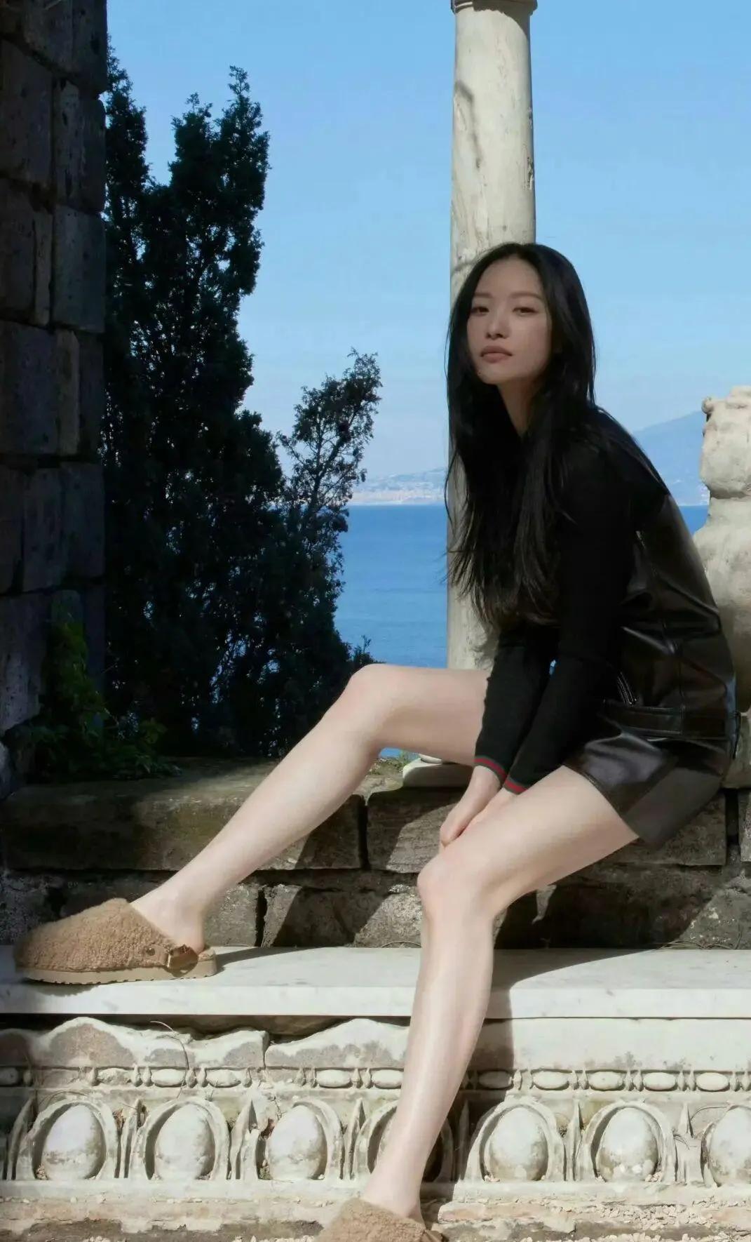 倪妮才是松弛感穿搭天花板! 黑针织+皮裙+毛绒拖,简单搭配直接穿出高级感,随性又时髦! 这状态,这颜值,美到犯规! 倪妮 明星穿搭 松弛感穿搭 皮裙穿搭