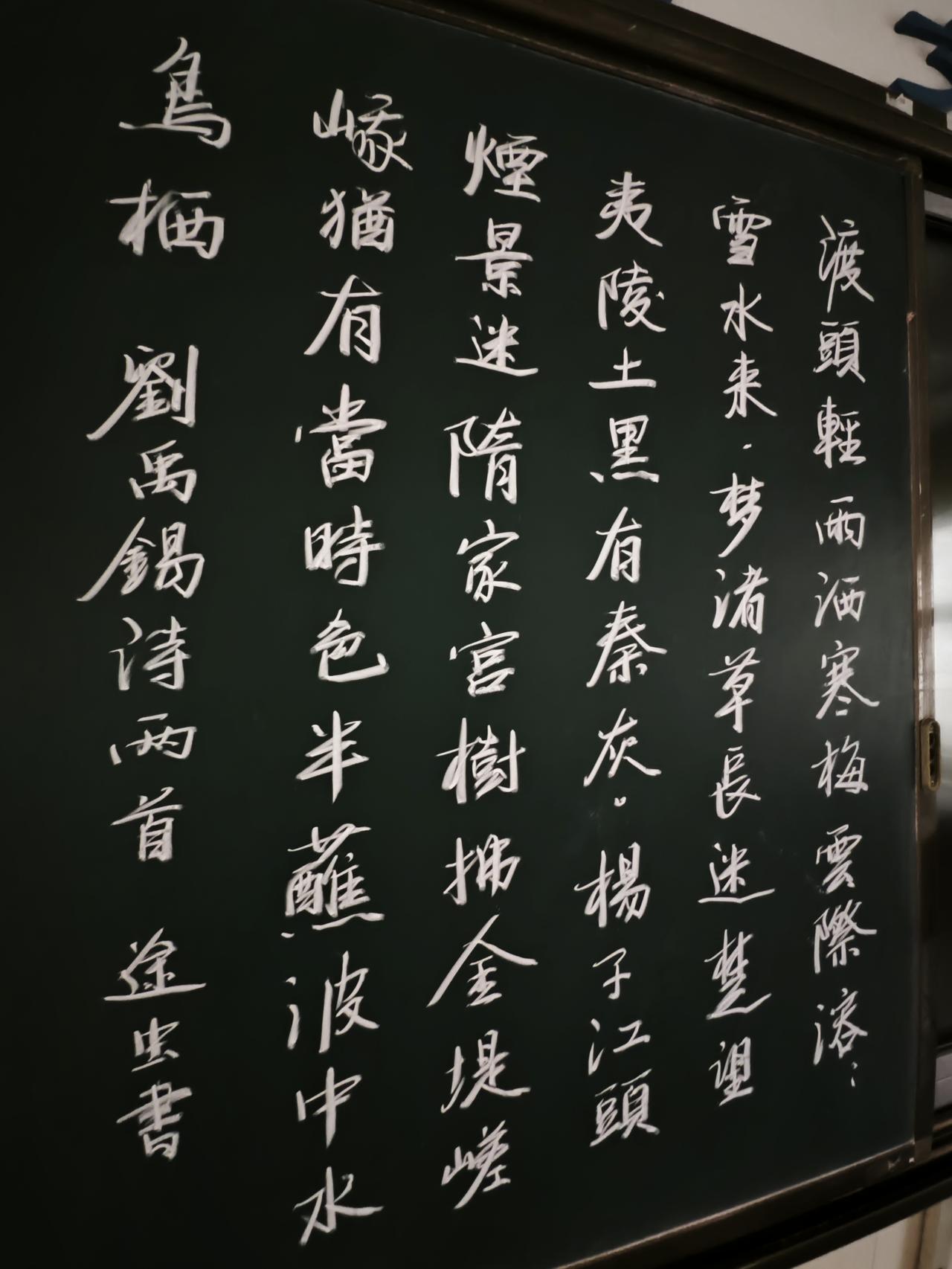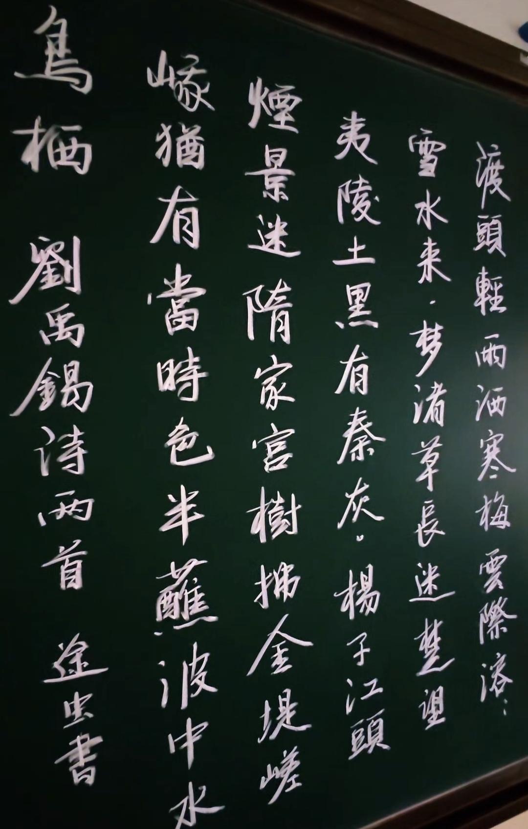 练一练粉笔字,慢慢找一点感觉。下周要跟年轻老师分享粉笔字的书写,这段时间得把楷书练一练。[大笑]从PPT到多媒体,教学设施越来越先进,我自己也越来越懒了,快退休了,这两年板书多一点,以前还是依赖于PPT和多媒体。各有优点吧,板书可以让重要的知识点整节课展示在黑板上,多媒体能更生动形象的展示图形转换过程,谁离开谁都不好。粉笔字的书写,首先要掌握粉笔的特性,它的笔尖是不断转换的,所以在手中也要适度旋转。力度也很重要,排版是最大的难点。其实不一定要每个字都写的很好,但排版一定要整齐,字体大小要一致,这样看上去就比较舒服。教育