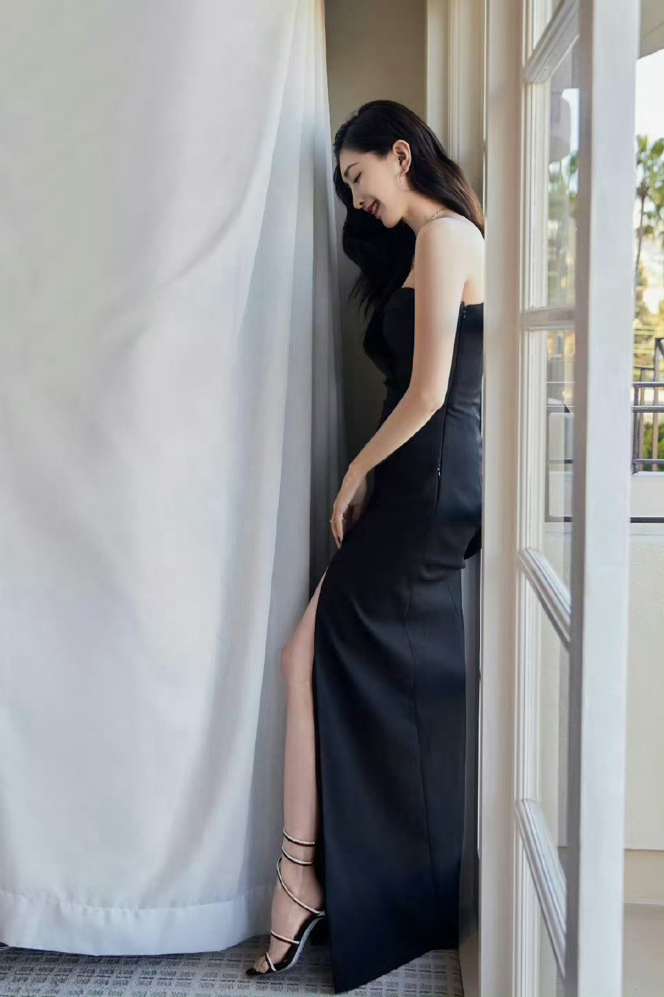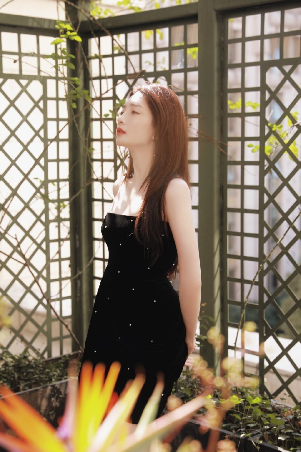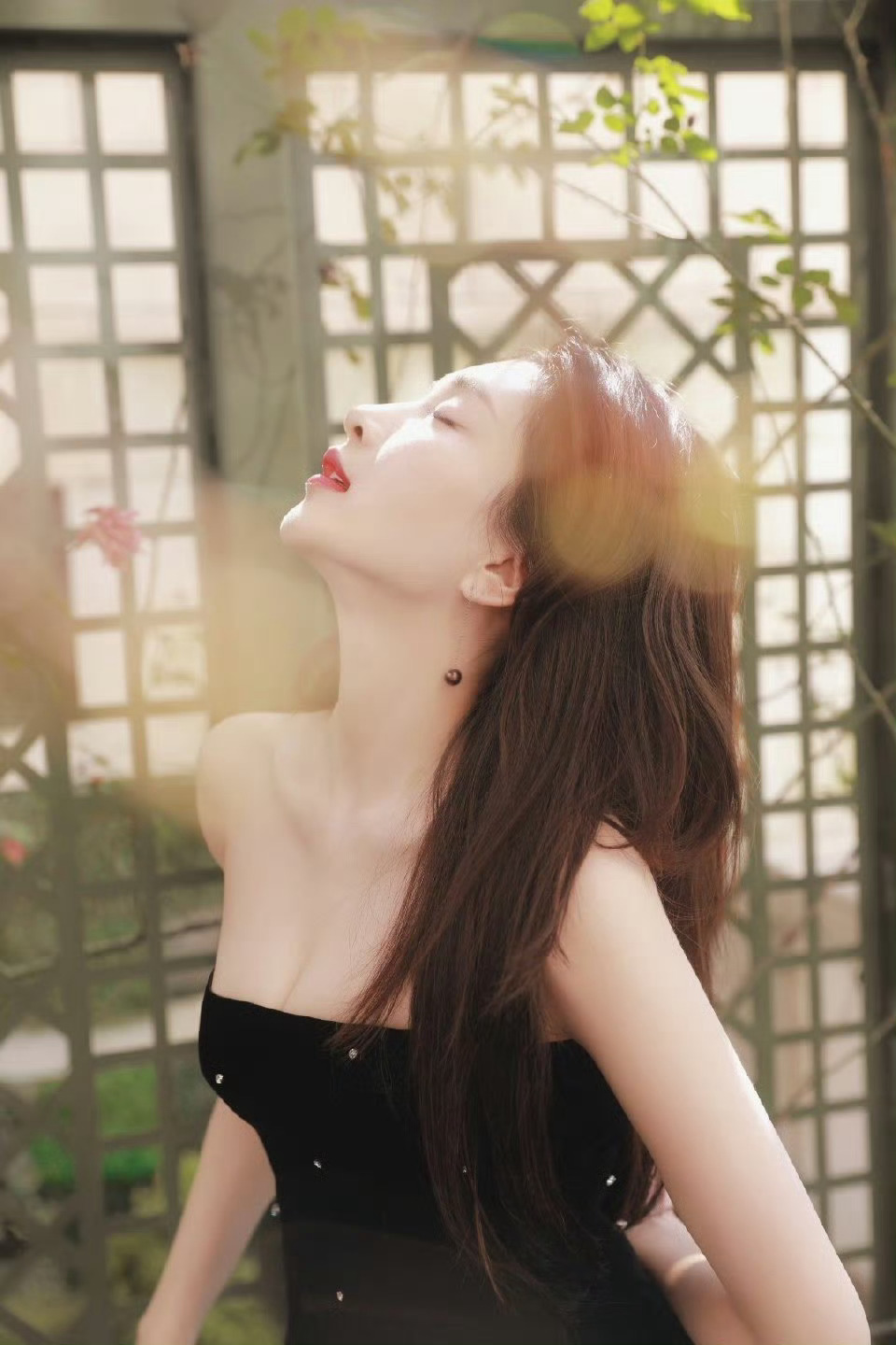 美女壁纸~古力娜扎一袭挂脖露背长裙,鎏金缎面裹着曼妙身姿,复古耳饰点亮慵懒风情,