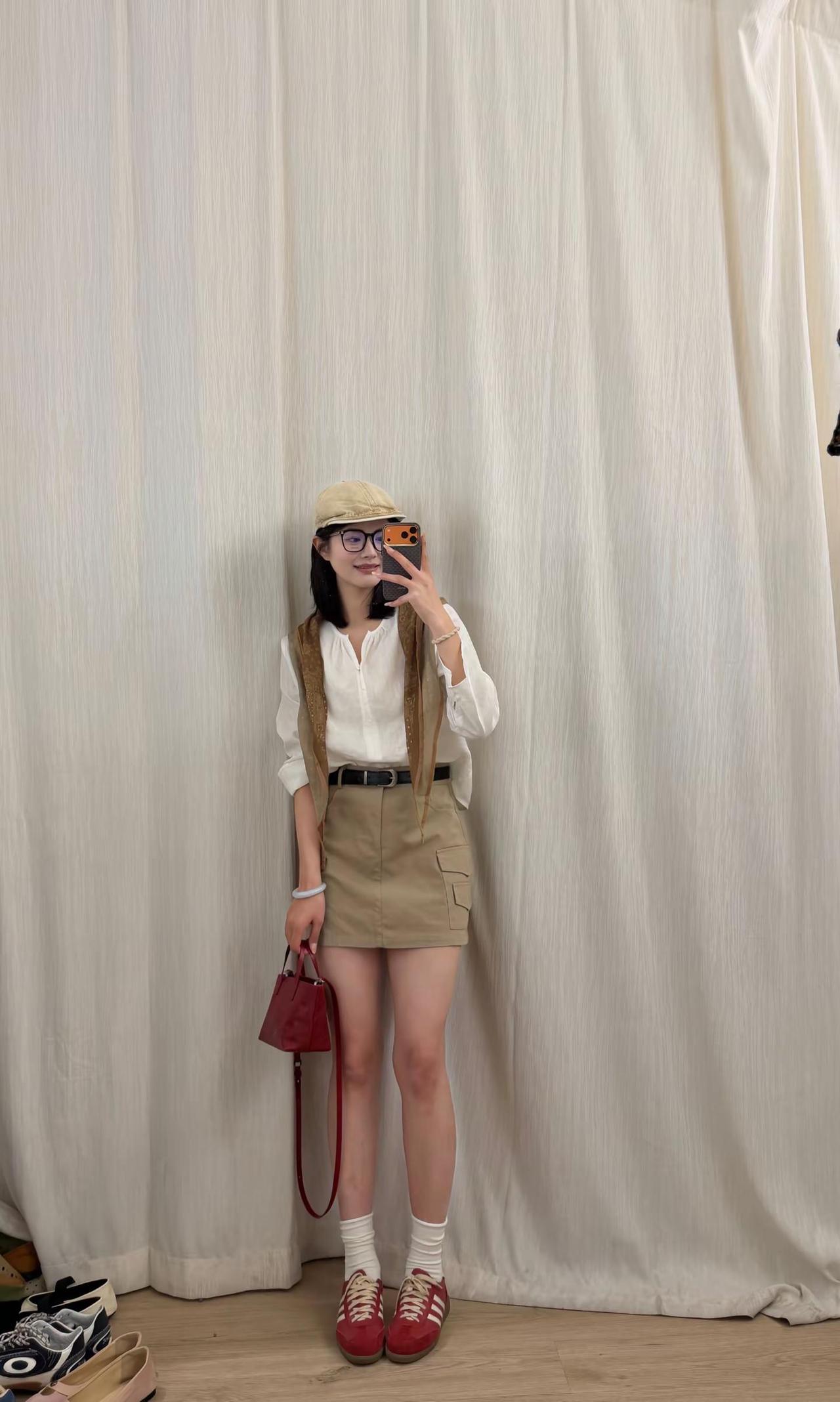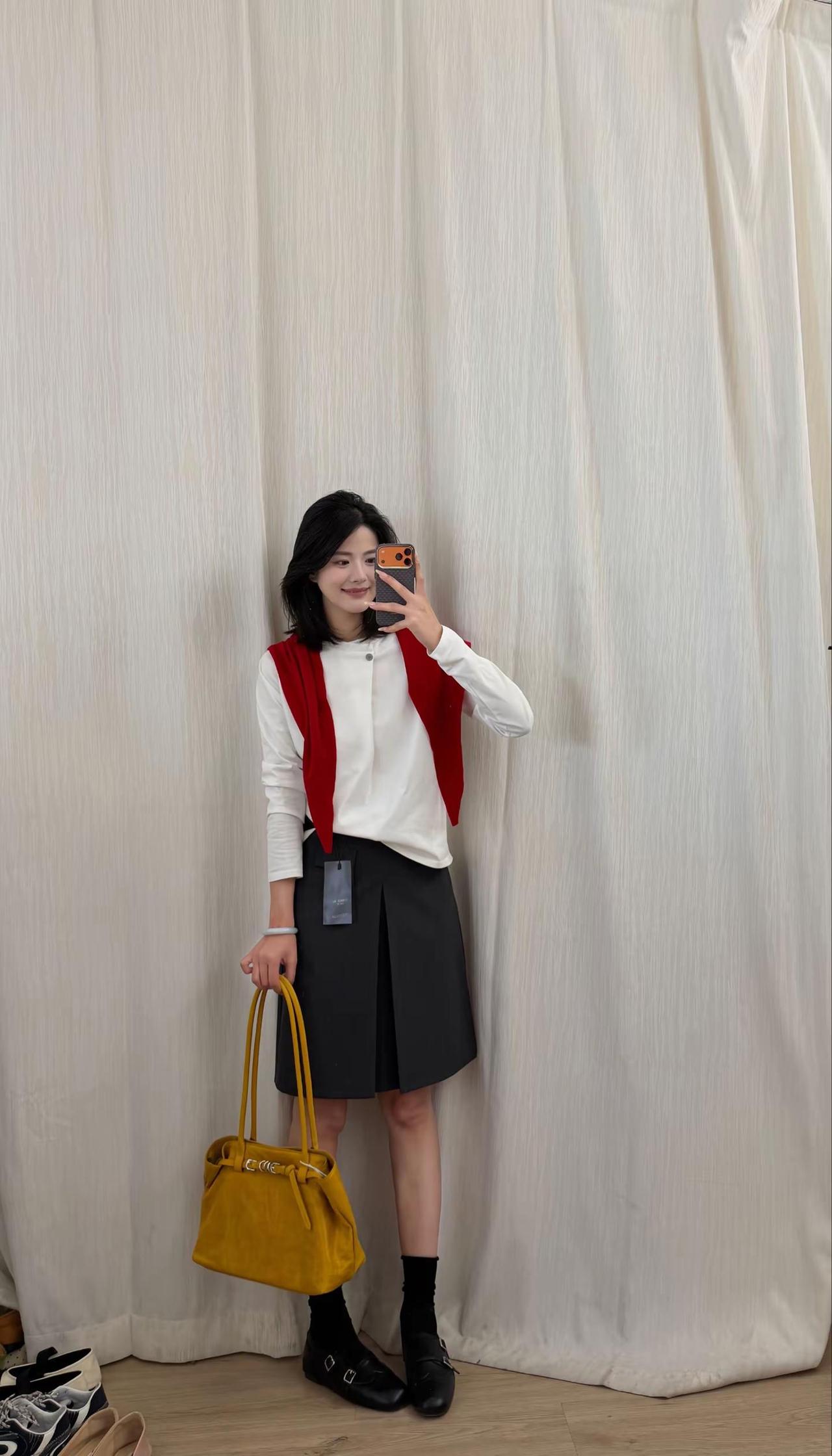 这套穿搭在咖啡馆外太有“温柔轻熟感”了!酒红色针织+同色系皮质半裙自带优雅氛围,