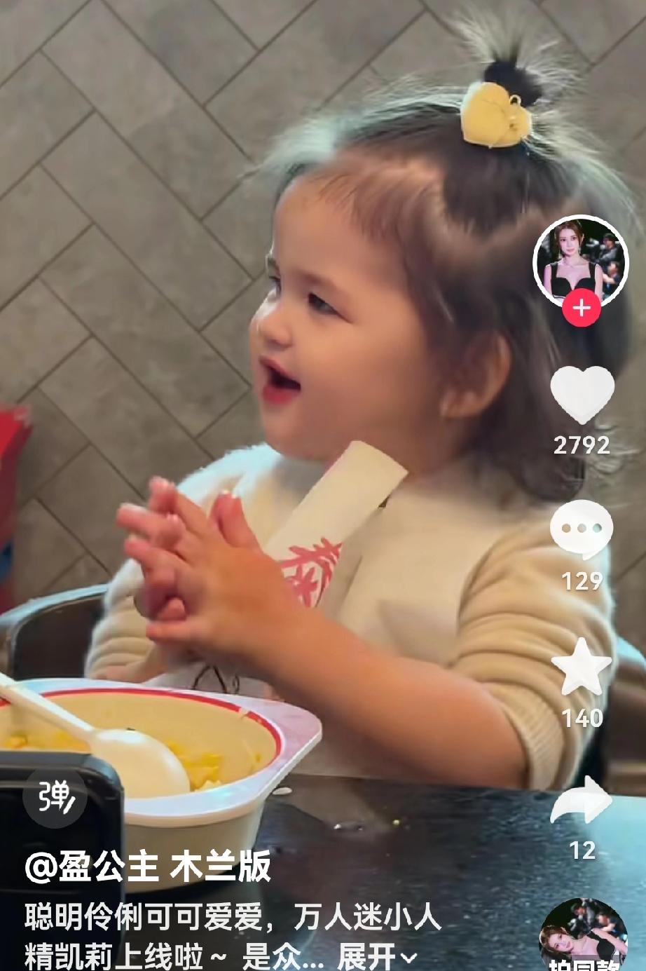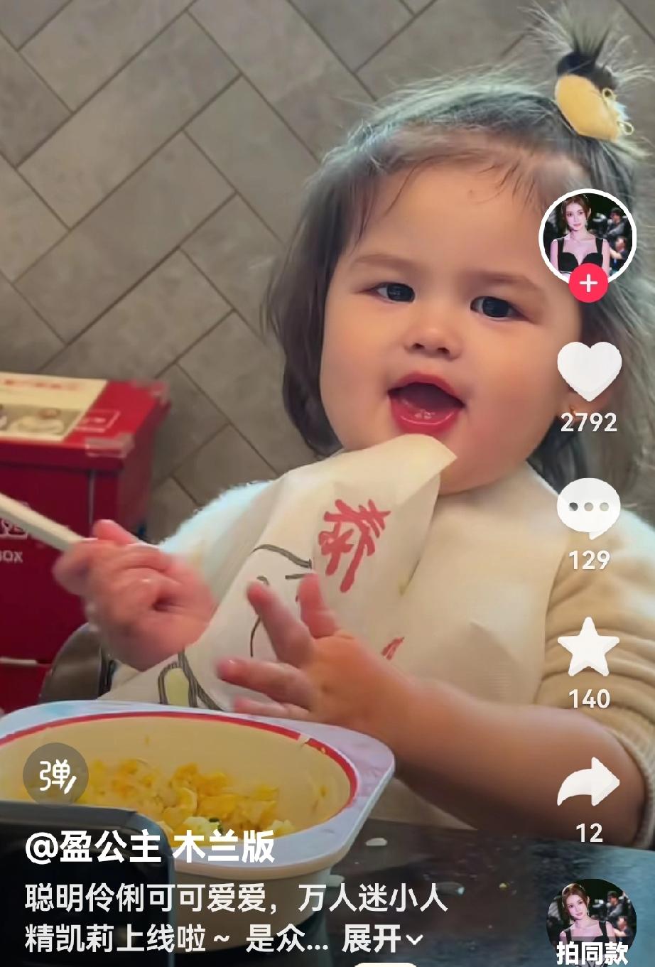 小凯莉多可爱,吃米粉都这么呆萌,全程配合盈公主的指令,活脱脱一位我洋娃娃机器人。[比心][比心]