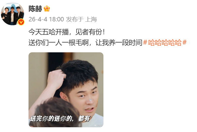 陈赫五哈开播送你们一人一根毛陈赫送你们一人一根毛 陈赫五哈开播送你们一人一根毛,