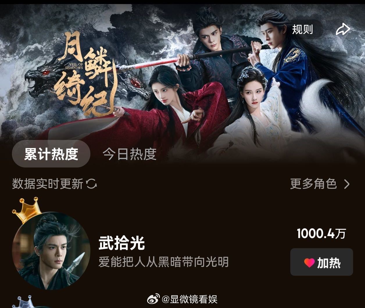 曾舜晞武拾光优酷站内角色热度破1亿 曾舜晞武拾光优酷站内角色热度破亿,月鳞也破万了,双喜临门!这就是双平台破万男主吗!一步一个脚印,慷慨且帅气的小曾未来可期!!武拾光值得被更多人喜欢!🎉曾舜晞双平台破万男主