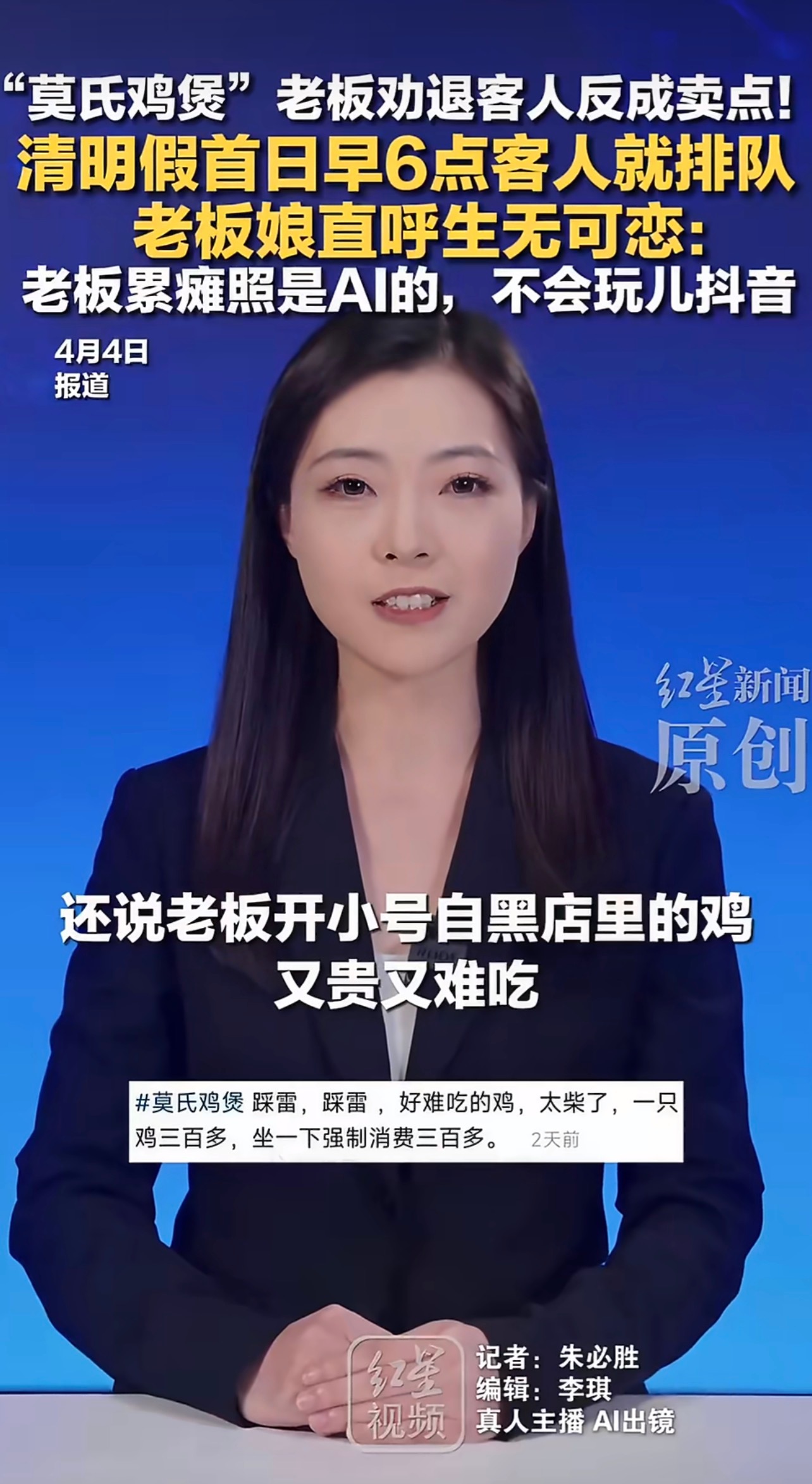 莫氏鸡煲老板娘直呼生无可恋全网最不想火的鸡煲店,老板自爆冻鸡劝退客人,结果反倒排到几百号