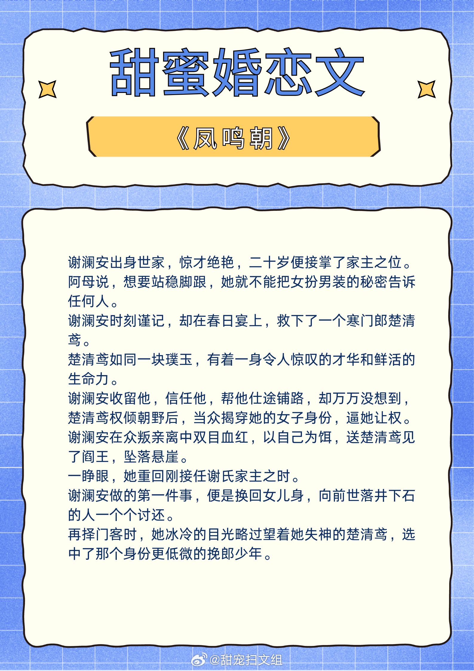 甜蜜婚恋文,双向奔赴的爱情果然甜!1.《凤鸣朝》作者:晏闲2.《春心动》作者:田园泡3.《阿满逃婚记事》作者:天下无病4.《照金巷》作者:且醉风华5.《人下人》作者:吴若离6.《汴京小面馆》作者:松雪酥那些让我着迷的小说 热门言情小说推荐