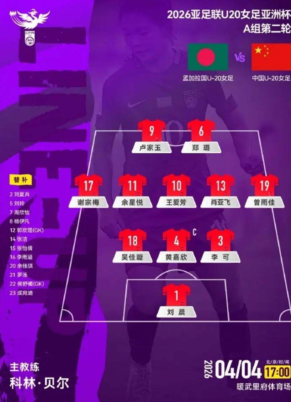 U20女足小胜弱旅孟加拉国,两粒进球精彩。 U20女足亚洲杯第二轮,中国队对阵小组弱旅孟加拉国U20女足。上半场由于天气炎热和队员的急躁心态原因,影响了中国队的优势发挥,单刀不进、射术不精,以及对方密集防守,中国队控球率84%,9脚射门5脚射正却未取得进球。下半场开始,中国队换下状态不佳的卢佳玉和郑璐,换上余佳琪、周欣怡,进攻取得成效。开场近2分钟,19号曾雨佳过掉对方两名后卫,底线传中,11号余佳悦拍马赶到,一脚垫射,打入中国队本场首球。整个过程曾雨佳运用技术冷静、合理,帮助余佳悦打入精彩进球。 第二粒进球是第82分钟,中国队获得禁区外任意球。10号王爱芳主罚。皮球穿过孟加拉国人墙空挡,孟加拉国守门员虽碰到了球,由于势大力沉,角度刁钻,被王爱芳打入一粒漂亮的任意球世界波。 次轮战罢,中国U20女足成功晋级1/8决赛。