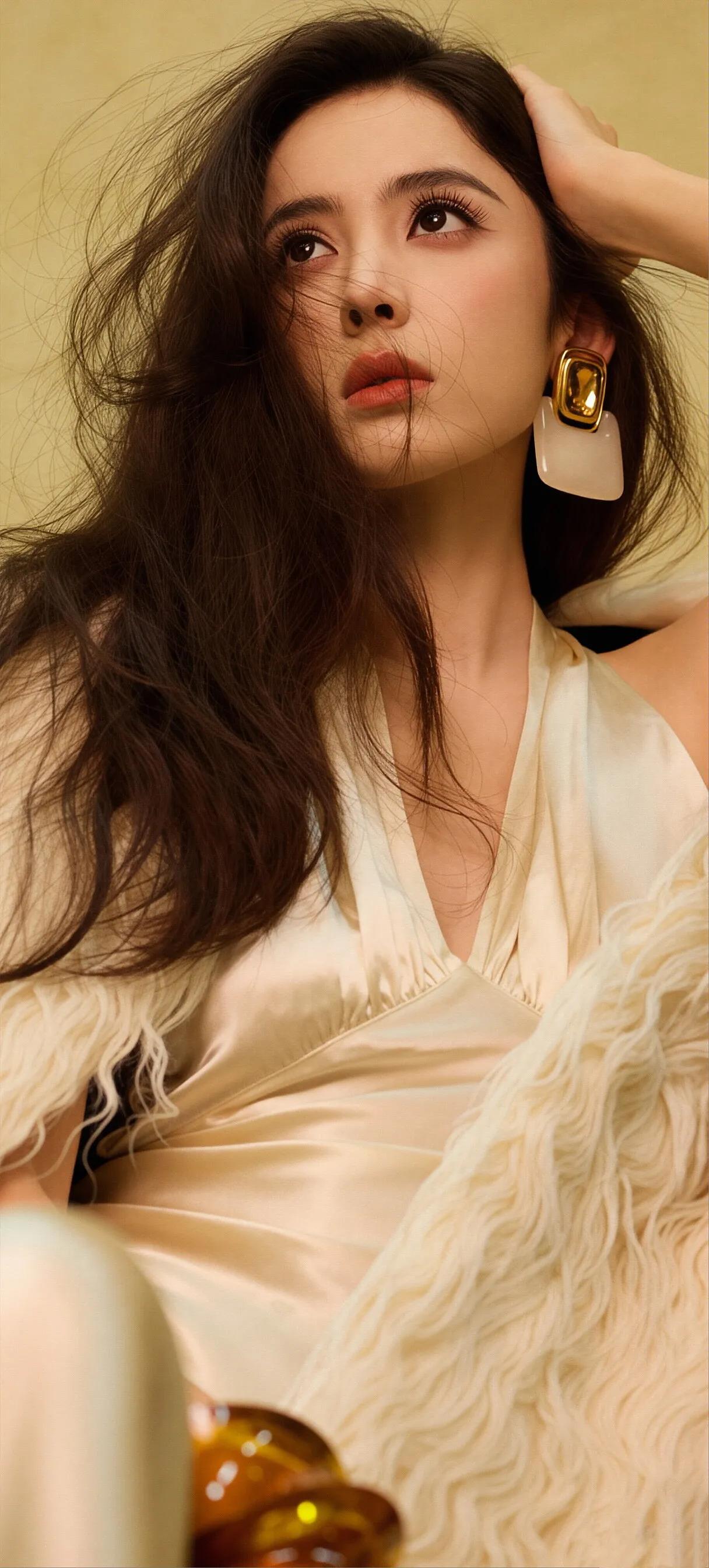 美女壁纸~古力娜扎一袭挂脖露背长裙,鎏金缎面裹着曼妙身姿,复古耳饰点亮慵懒风情,将松弛与性感揉进光影里,卷发随风,氛围感拉满,写满了致命吸引力