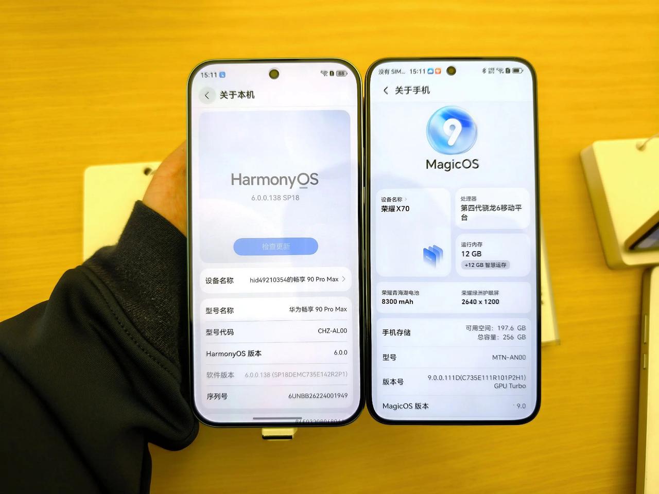 左边是1699元的华为畅享90 Pro Max,右边是1699元的荣耀X70,同样是热门千元机型,你们觉得这俩手机的差距大吗 去年7月份发布到现在,荣耀X70在千元机市场没有遇到过对手,凭借1.5K绿洲护眼屏、8300mAh青海湖电池、IP69K满级防尘防水等特性又一次受到了用户和消费者的认可 荣耀X系列的产品策略一直就很简单粗暴,机身耐造、屏幕护眼并且有着领先友商的续航表现和手机信号。据说接下来的荣耀X80依旧会延续系列的特性,电池容量增加到10000mAh,芯片升级到骁龙7系列,屏幕和后置镜头稳步提升 这段时间很火的华为畅享90 Pro Max,个人感觉算是第一款学到荣耀X系列精髓的千元机
