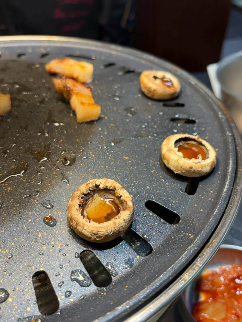 来吃烤肉了!!!谁说烤口蘑很鲜的 这个汁水一股我家小狗脚的味道