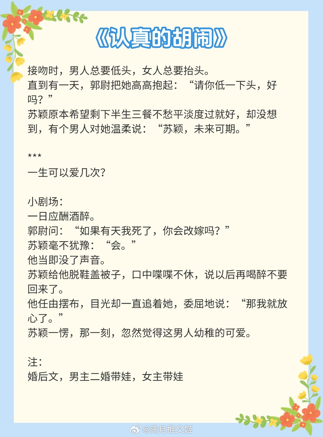 【高质量二婚文】遇见好的爱情,不管是今生的第几次,都要好好开始。