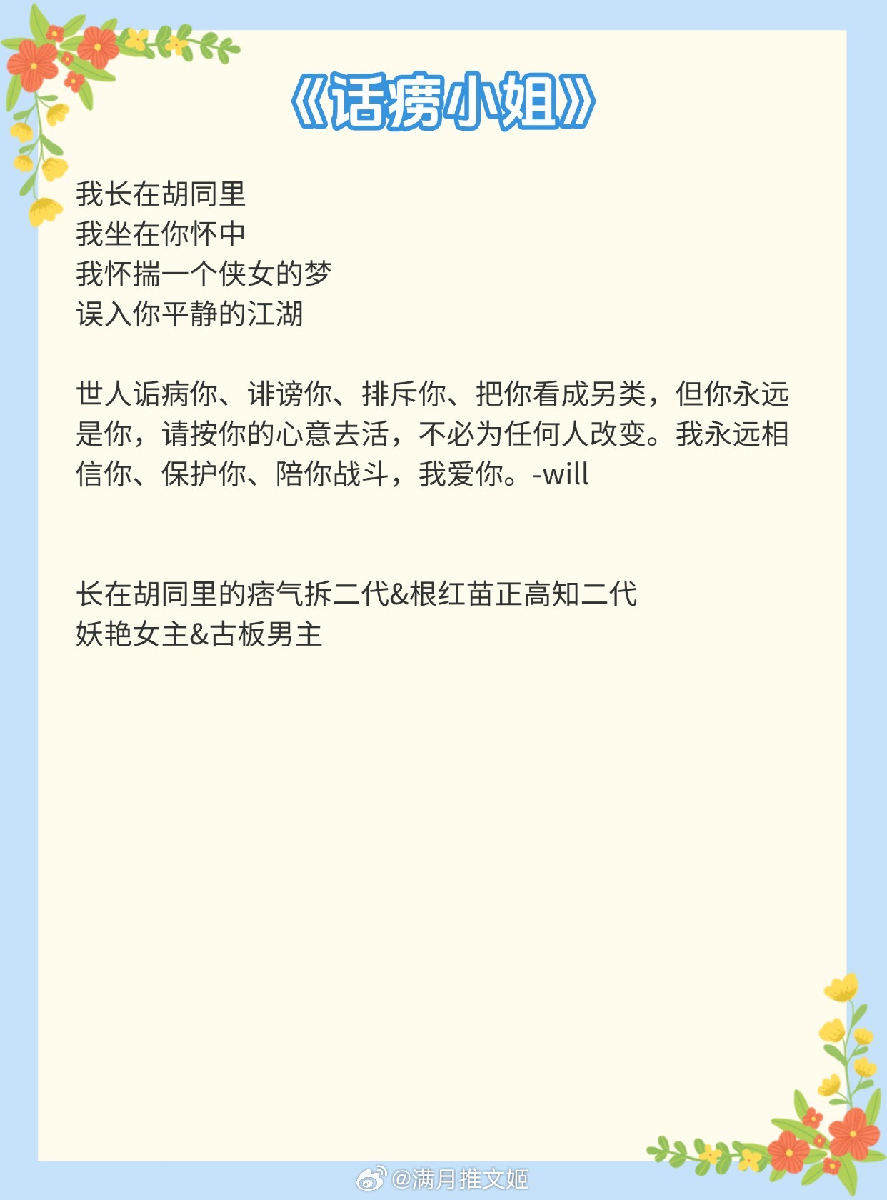 《认真的胡闹》作者:蟹总《误入浮华》作者:不经语《穿你的衬衣入睡》作者:孟宋《他愿意》作者:子泽华《话痨小姐》作者:姑娘别哭《今生才是第二次》作者:露西花推文言情小说推荐推文