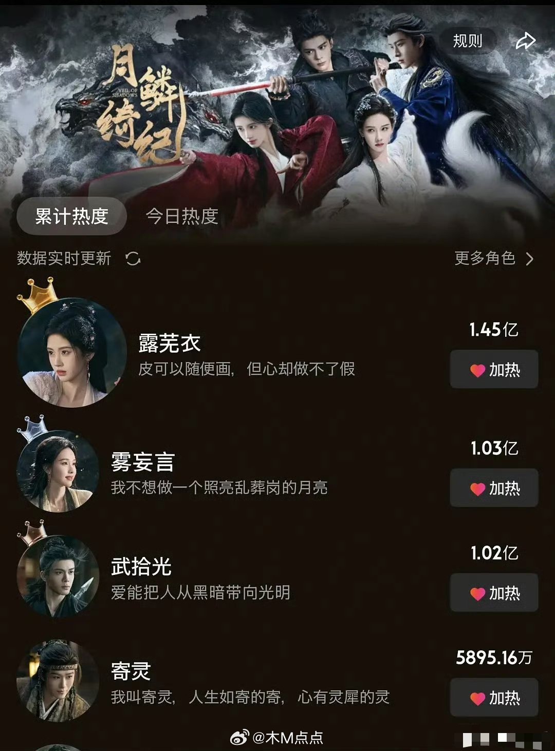燃起来了!!!四个主演3个角色热度破亿另外号外!月鳞绮纪破万后脱🥕了