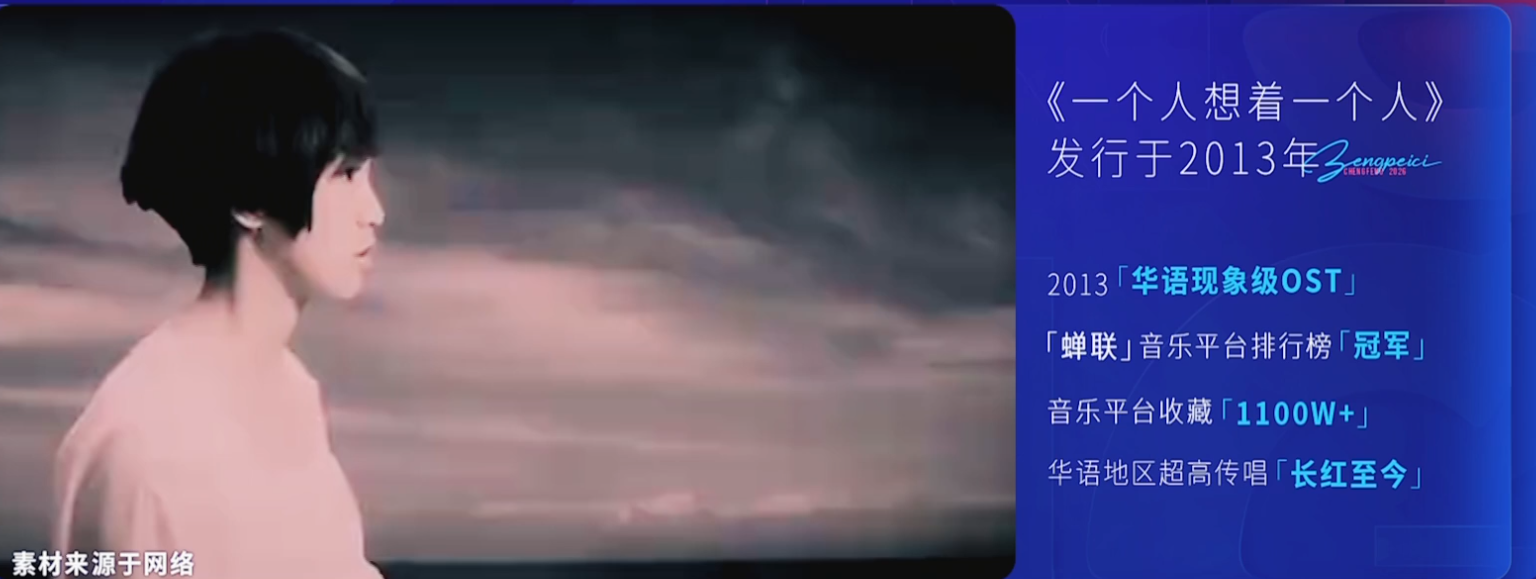 在初舞台上,她演唱的歌曲《一个人想着一个人》,既是《终极一班2》的主题曲,也是当年的年度爆红热曲,曾蝉联多个音乐平台的播放冠军,收藏量高达1100万,至今依然被很多网红翻唱。