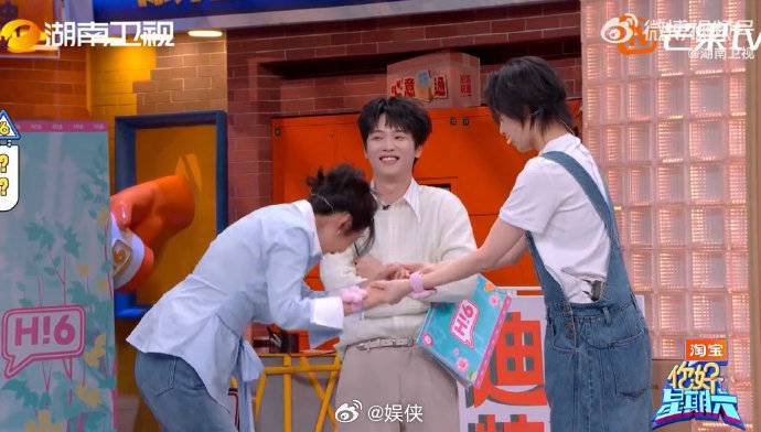 闫妮一个鞠躬把倪妮看懵了你好星期六表情传真笑点爆棚!闫妮演绎钓鱼动作突然鞠躬,直