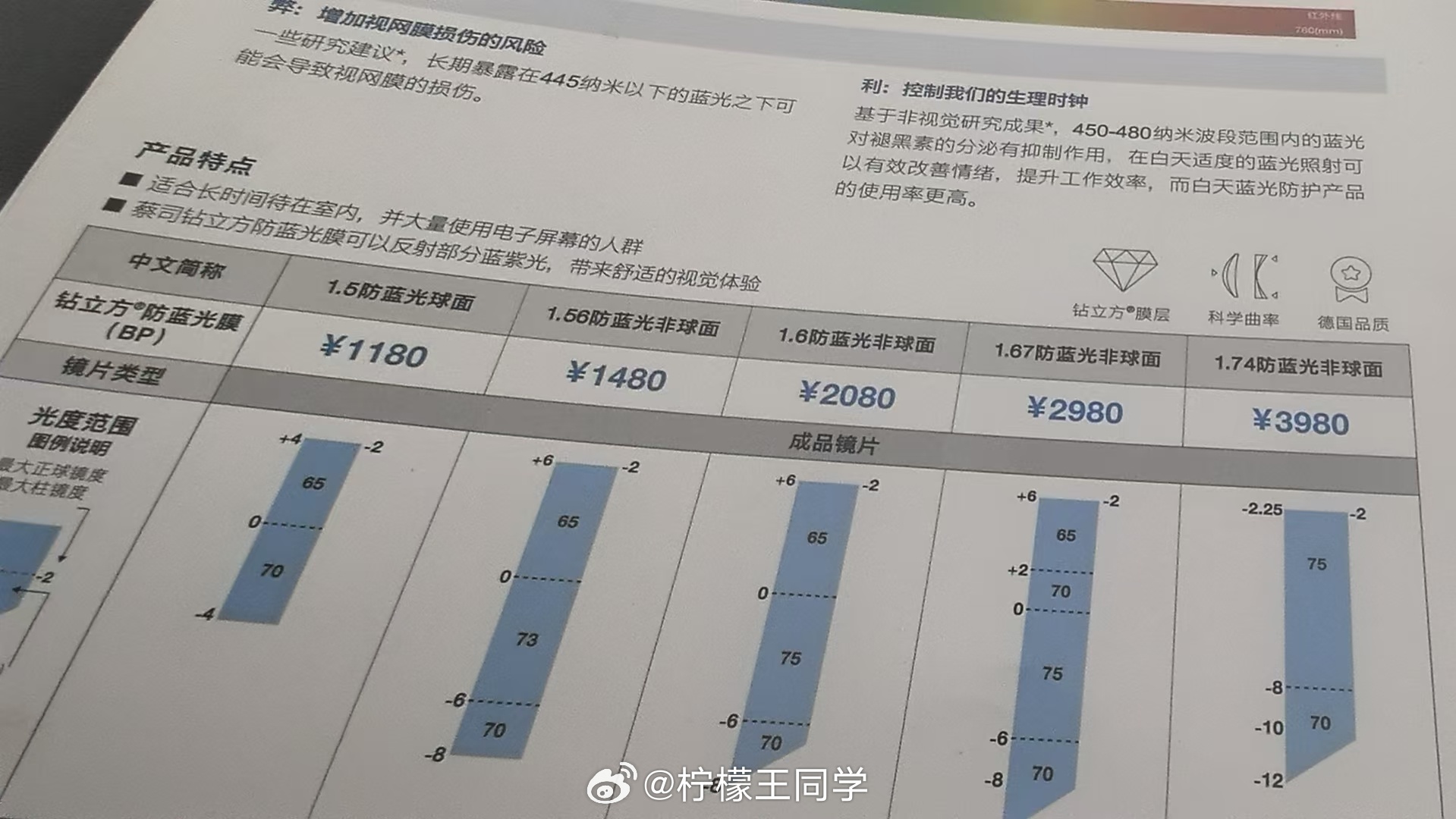 进价15元镜片竟卖799元同样蔡司的镜片,我们这边A系列的要一千多,丹阳那边只要