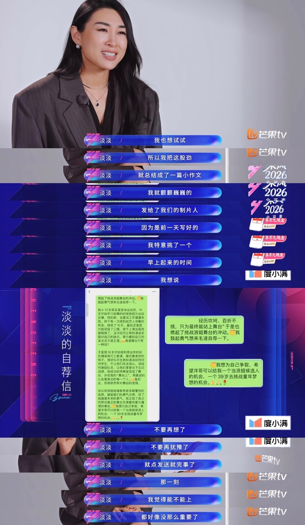 这就是浪姐的意义吧,任何人看了淡淡的求职信都会动容「毛遂自荐也是一种勇敢」「你想要改变什么现状 你就是去做」「我不想我不想把我的梦抛在后面,我想要被看见啊」淡淡毛遂自荐也是一种勇敢淡淡的求职信