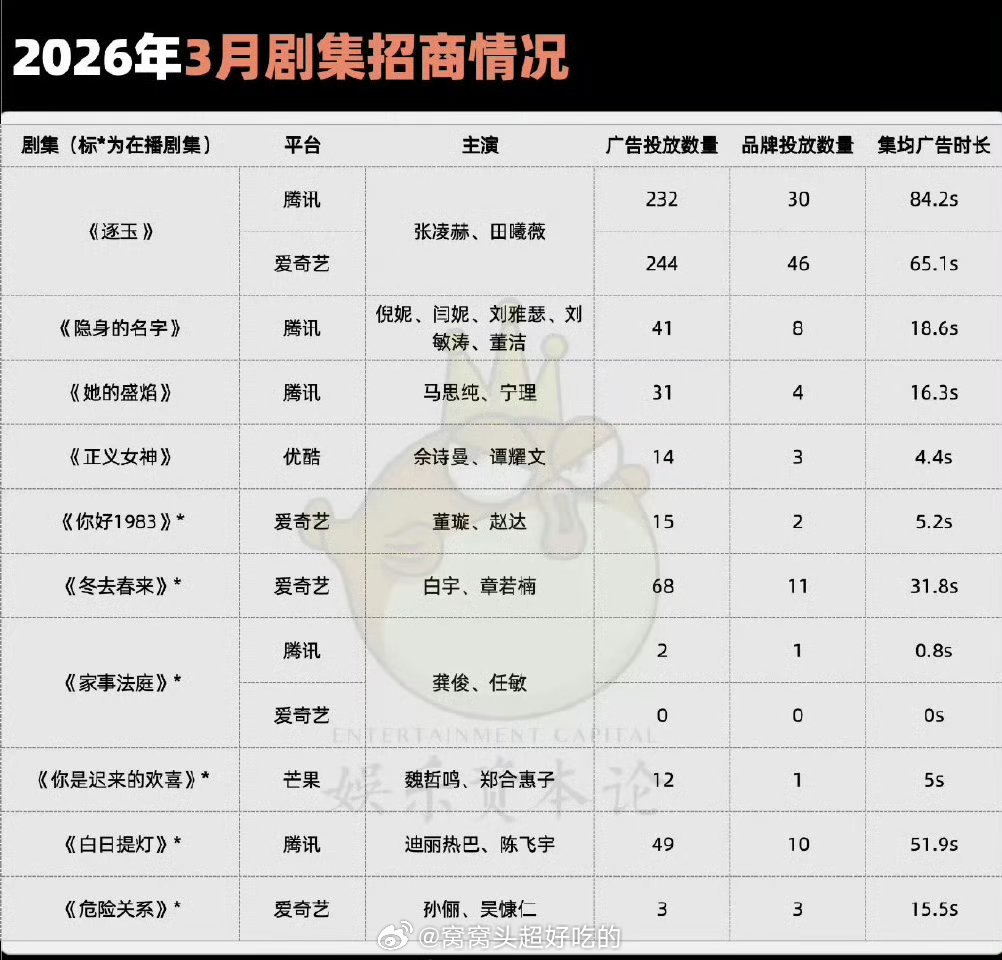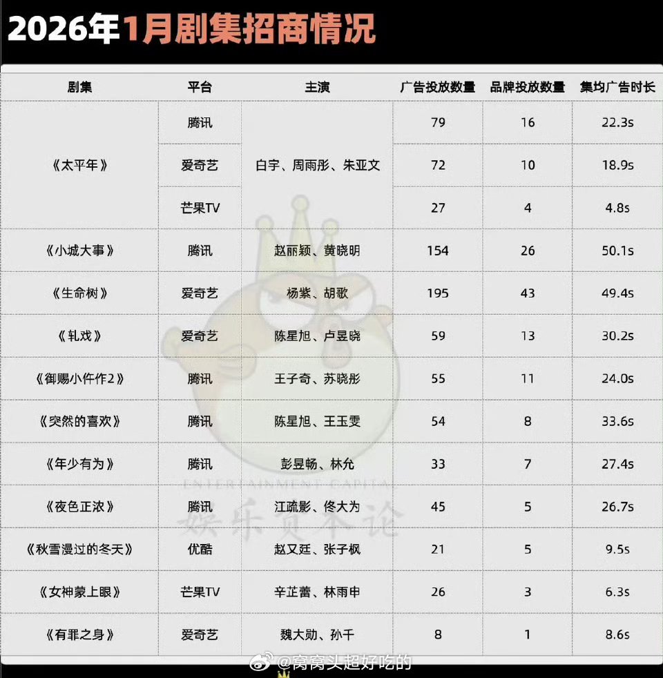 2026年1、2、3月剧集招商TOP:生命树 唐宫奇案 逐玉