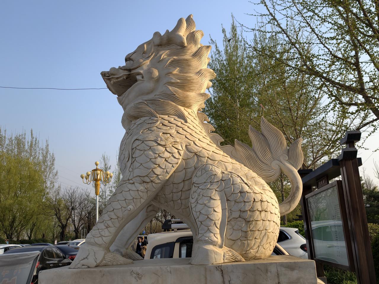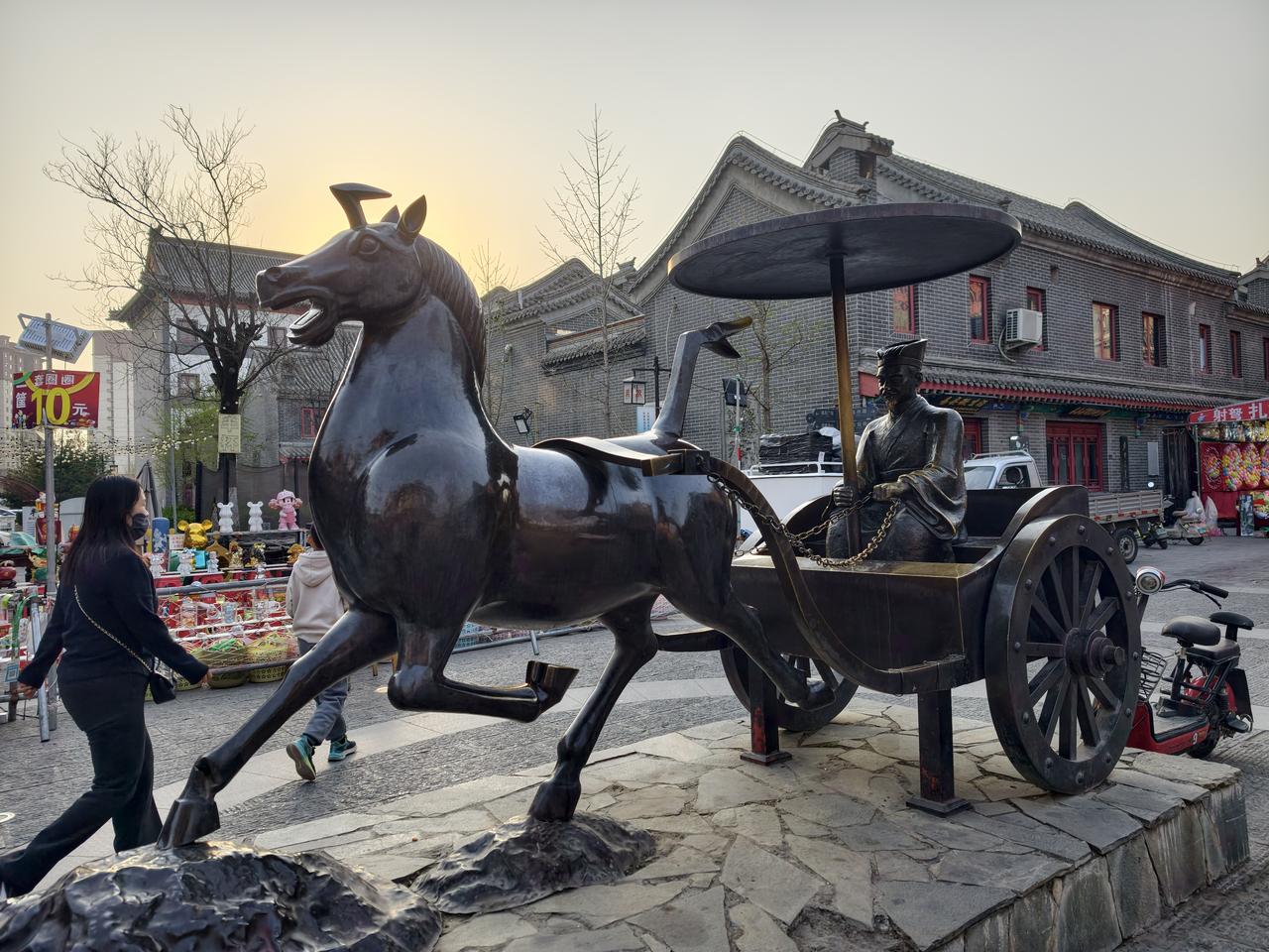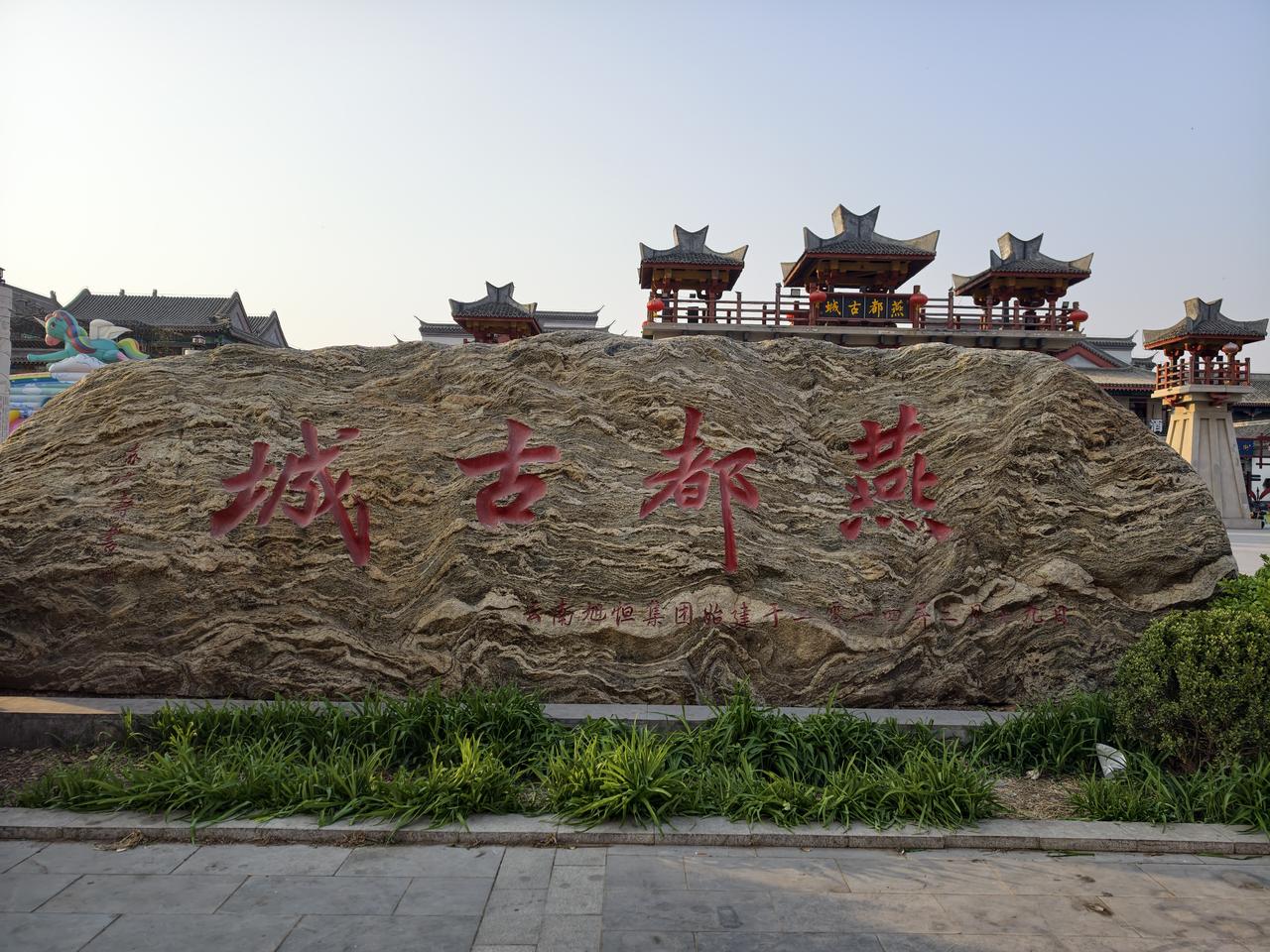清明易县(2)荆轲公园: 进入公园大门,高高的台阶上,先是矗立着一尊巨大的红色书简,再往上走就是“壮士一去不复还”的荆轲雕像了!!