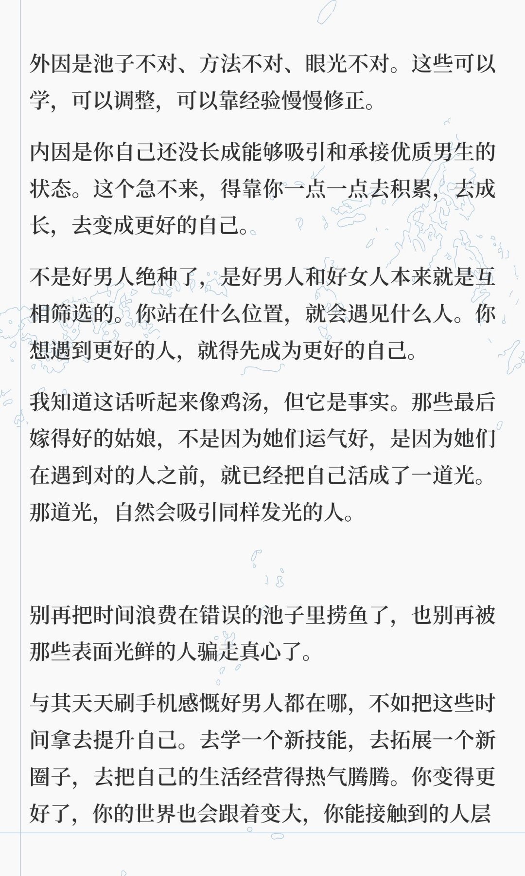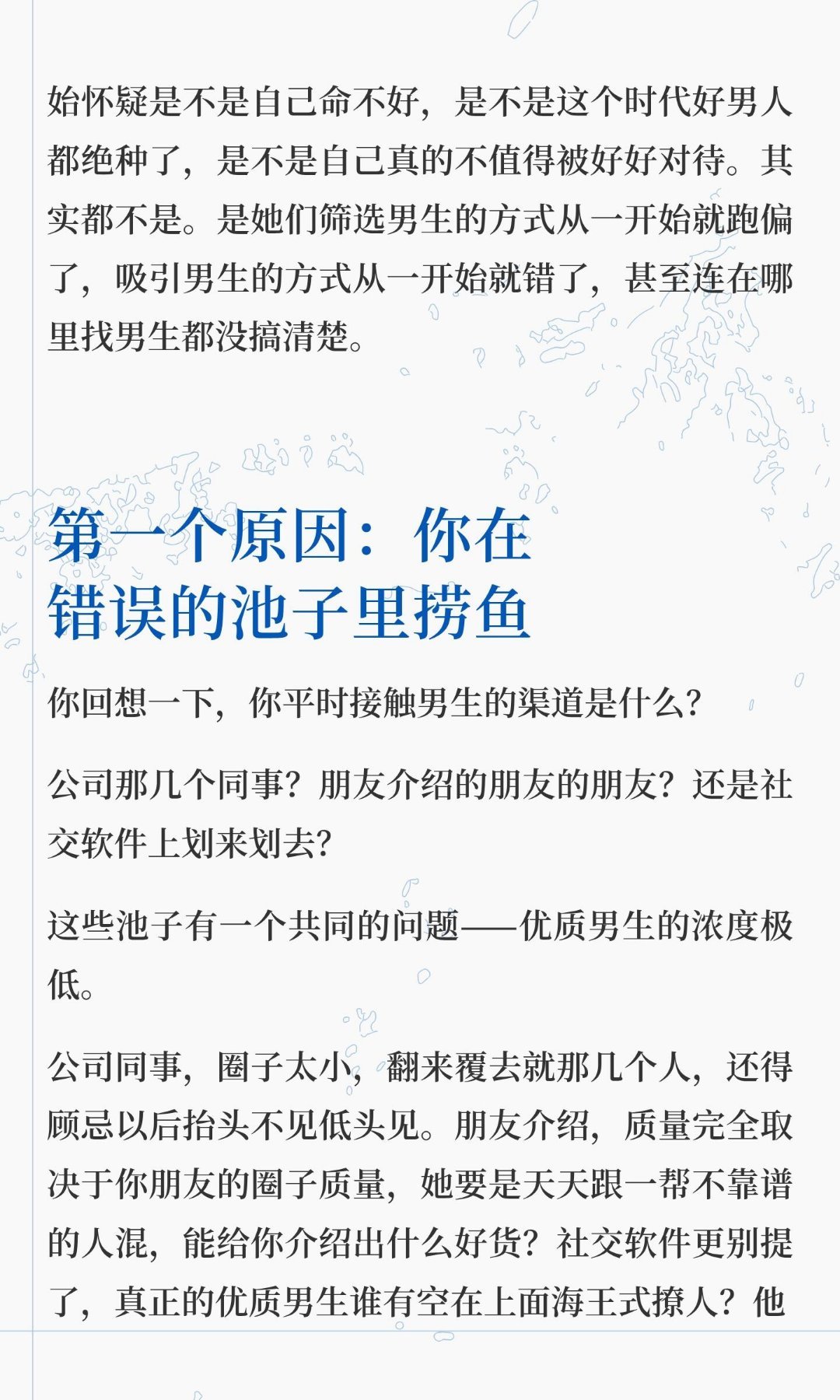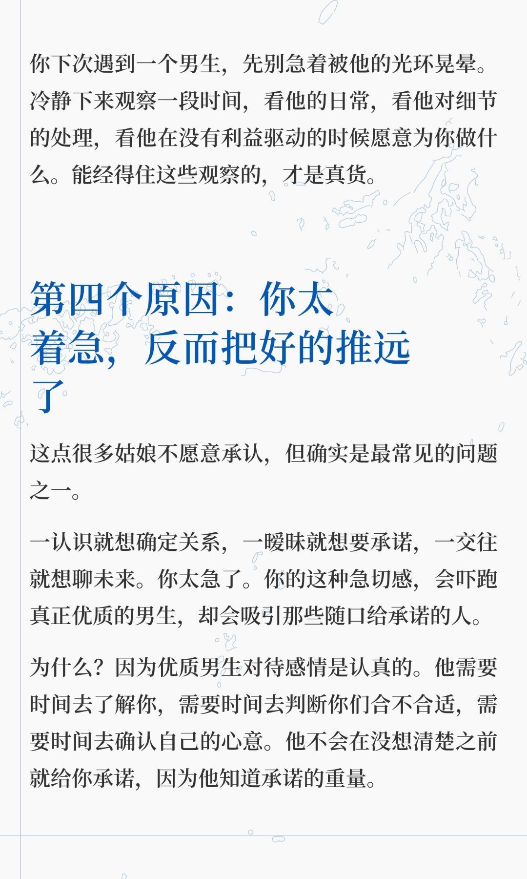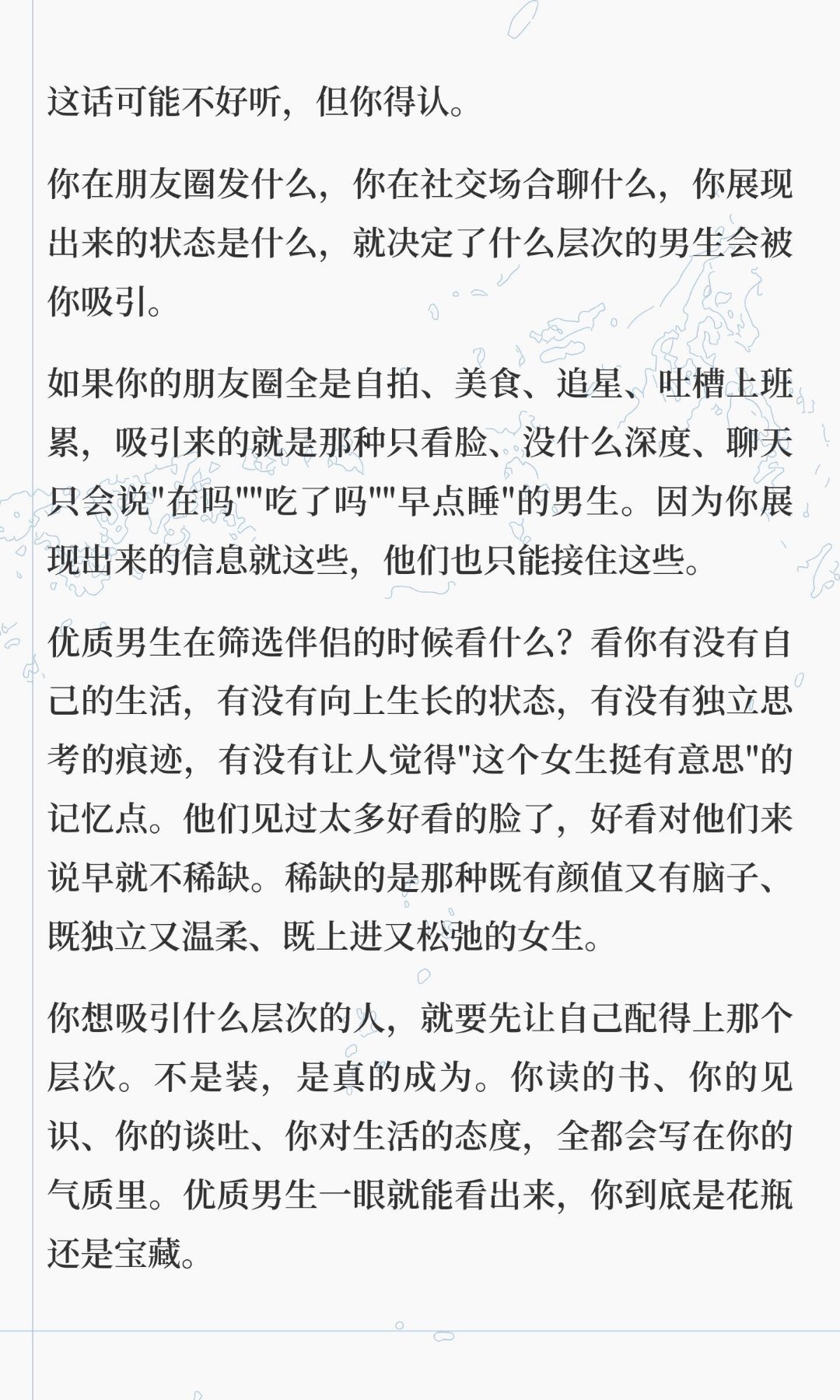 为什么大部分女生很难遇到优质男生?优质男生不在你刷短视频的地方,而是在高质量社交场合。改变筛选方式,提升自己,才能遇见真正优质的人。感情是双方共同成长的过程,先让自己成为更好的人,自然会吸引到合适的人。