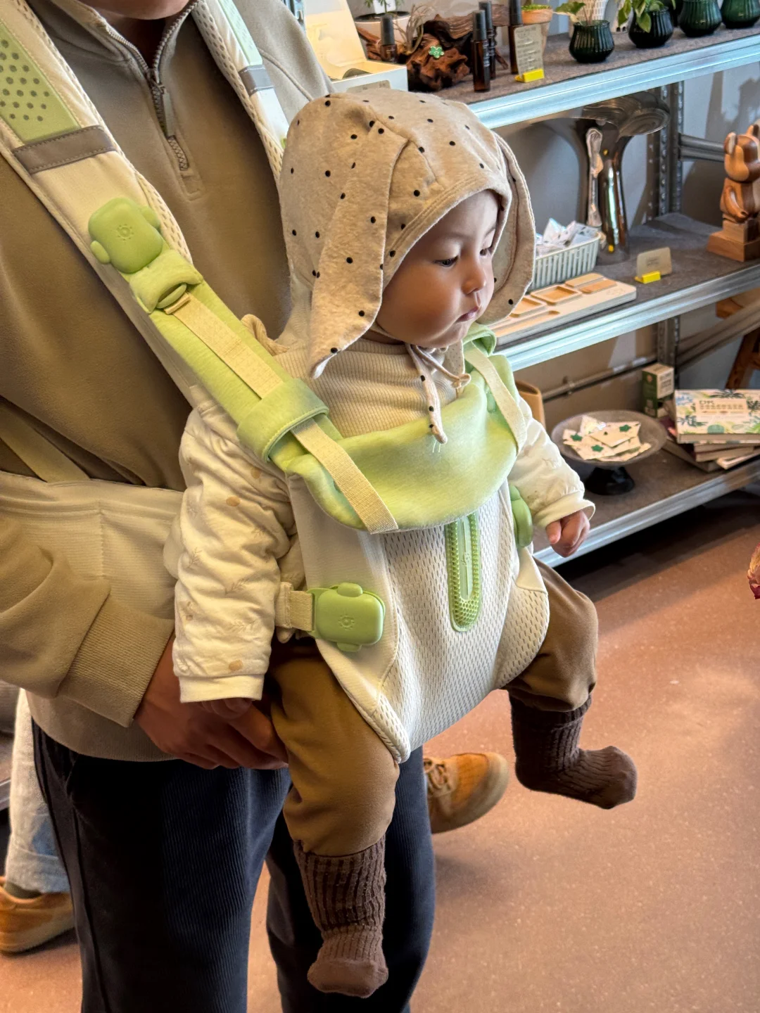 如果你们家宝宝是像我们这种已经会坐、又开始变得很爱探索的阶段,又不太愿意一直待在推车里的话,这种坐着更贴合、也更舒服一点的抱椅,真的值得一试