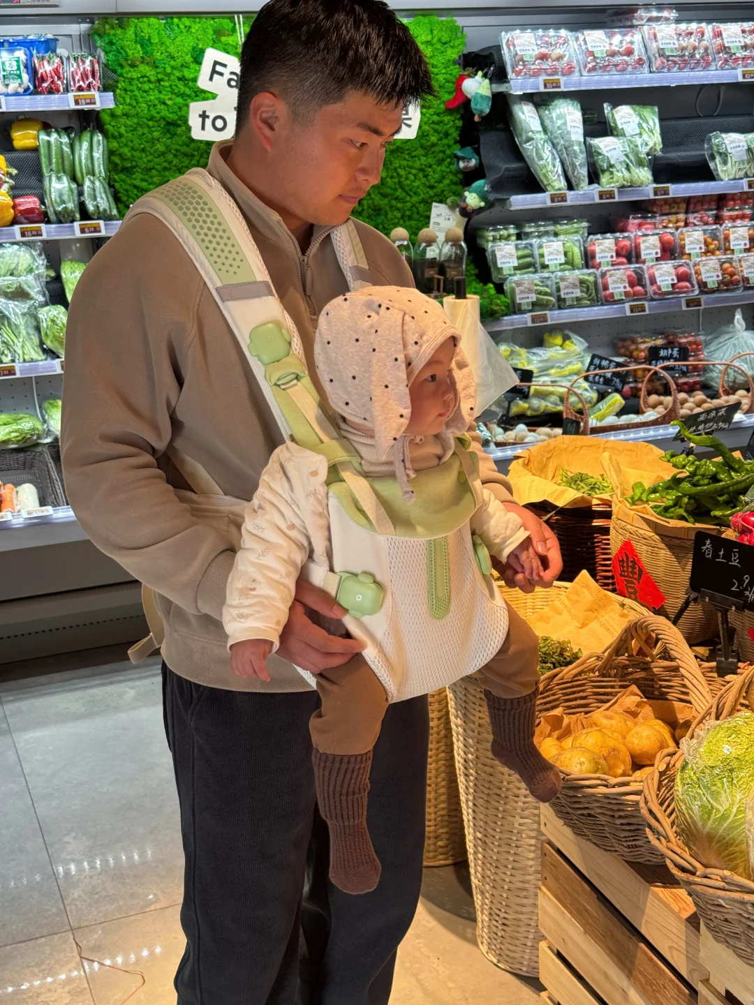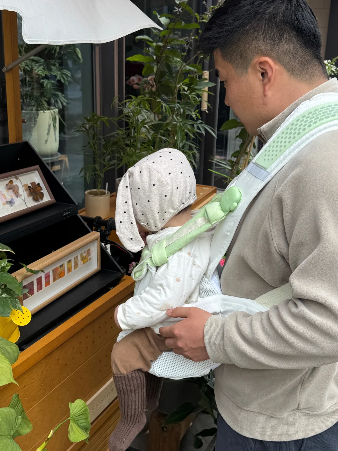 她现在10个月,已经进入一个很爱看周围的阶段了,不太愿意一直待在推车里,更喜欢黏在大人身上。最近只要天气好,基本都会爸爸带着她出门慢慢逛,这种轻松一点的闲逛状态,她非常喜欢