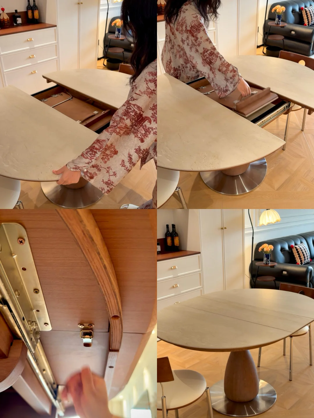 当初看上它最大的原因是,它还可以伸缩调节,家里人多时秒变1.4m大桌