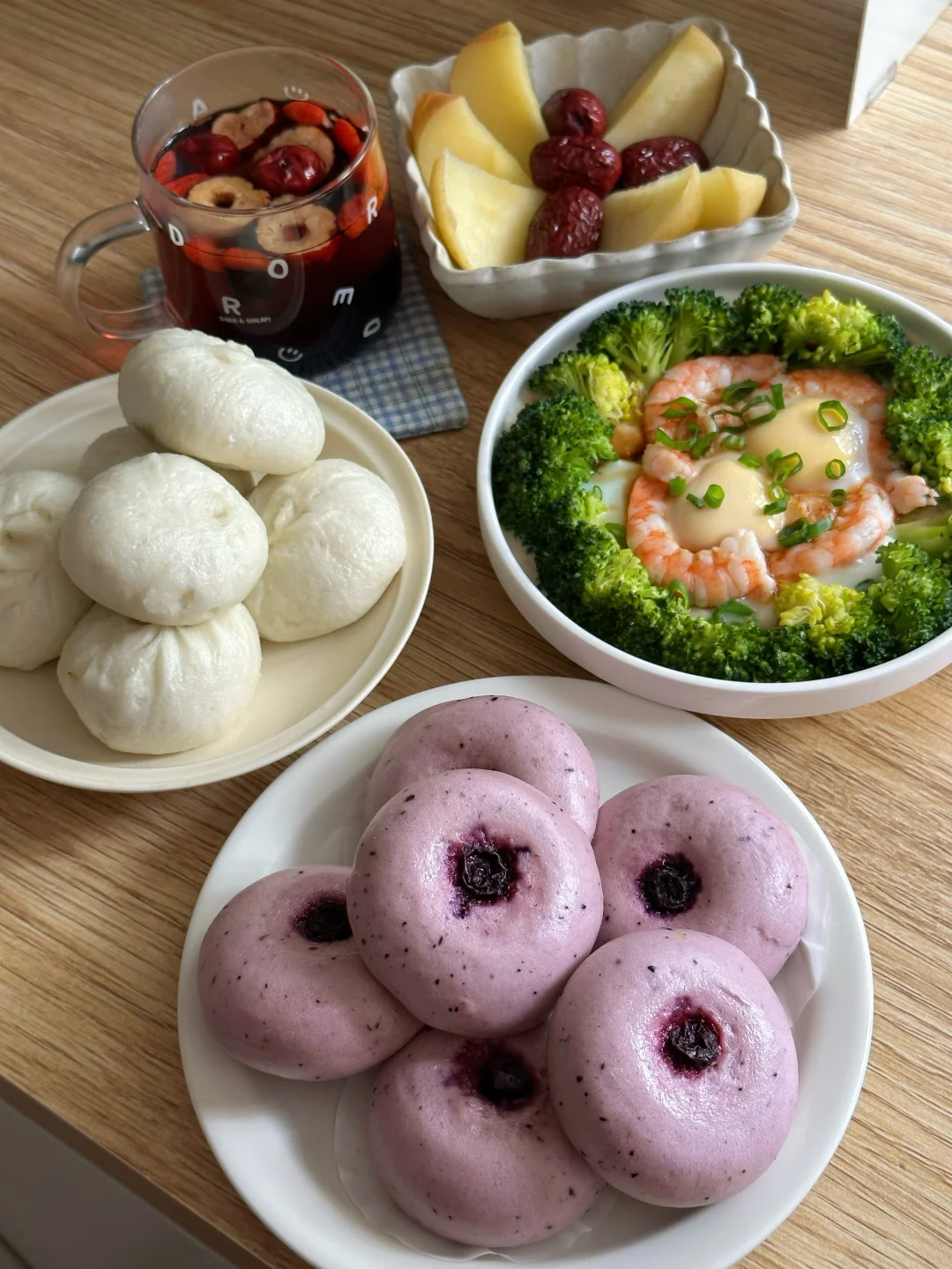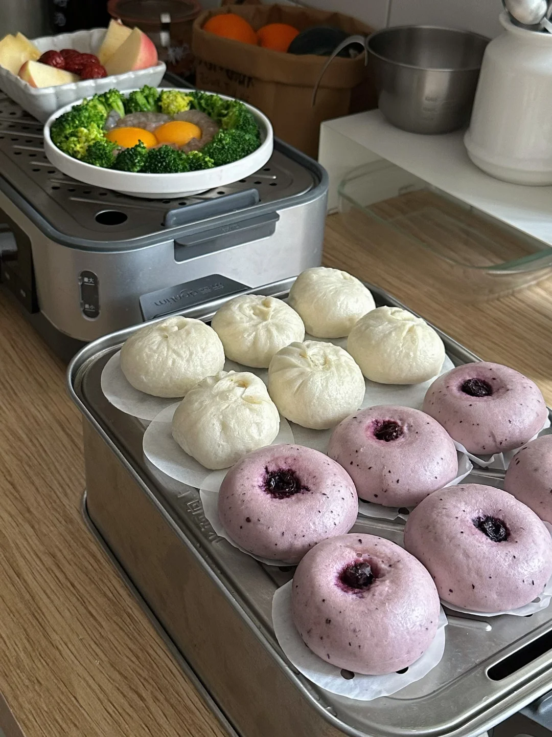 粉紫色小面团看着就治愈,蒸完软乎乎的,一开锅就能闻到奶香混合着蓝莓香,口感微甜不腻,大人小朋友都很喜欢。