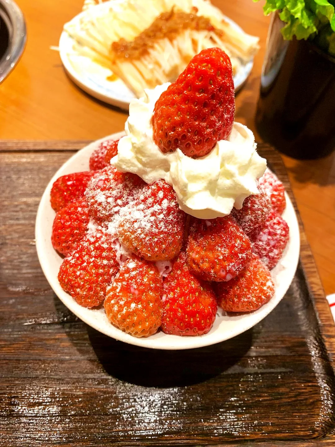鲜草莓堆得满满当当,淋上酸甜草莓酱,搭配绵密无渣的奶香雪冰,顶上奶油雪顶一铺,颜值超高!