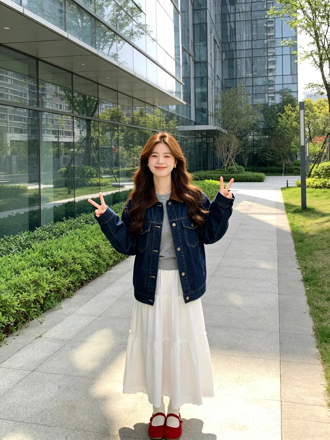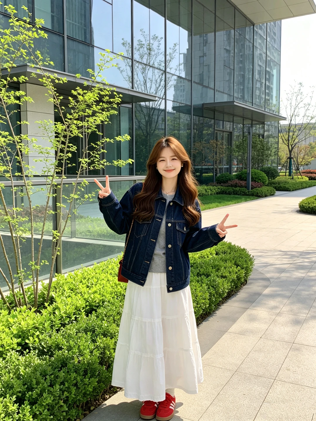 阳光明媚,牛仔和白裙子很配~