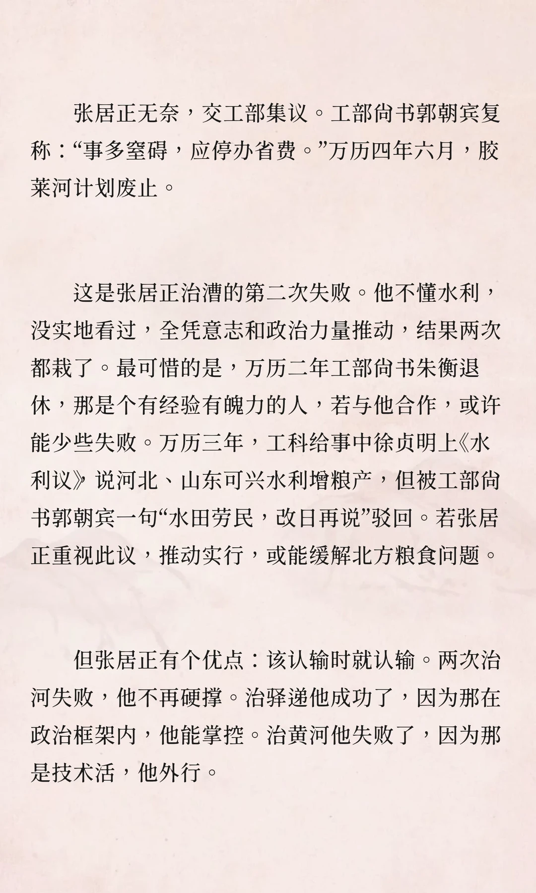 张居正整顿驿站,得罪官僚集团,但成功减少百姓负担。治黄河则因技术难题,两次失败,但最终仍推动改革,调整明朝方向。