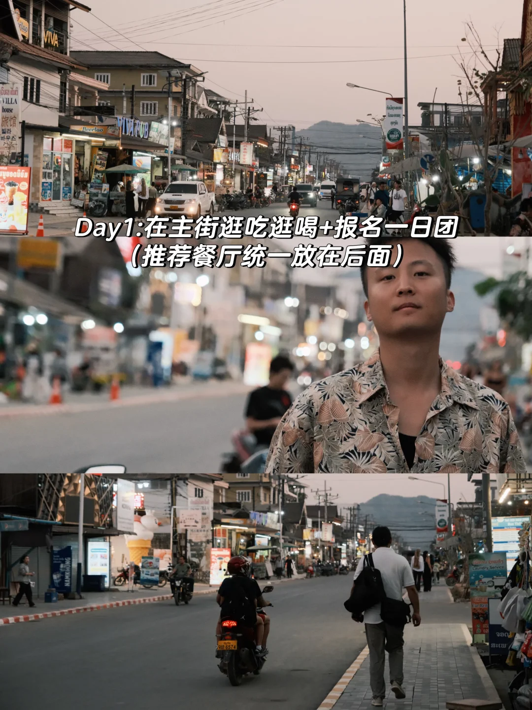 【Day1】万象or琅勃拉邦乘坐高铁到达万荣,入住朗悦华人酒店。万荣的酒店普遍条件都不如其他两个地方,朗悦虽然离市区较远,但可以随时叫班车,老板和伙计也都很热情❤️傍晚去主街上吃过饭,在当地旅行社报个一日游团。