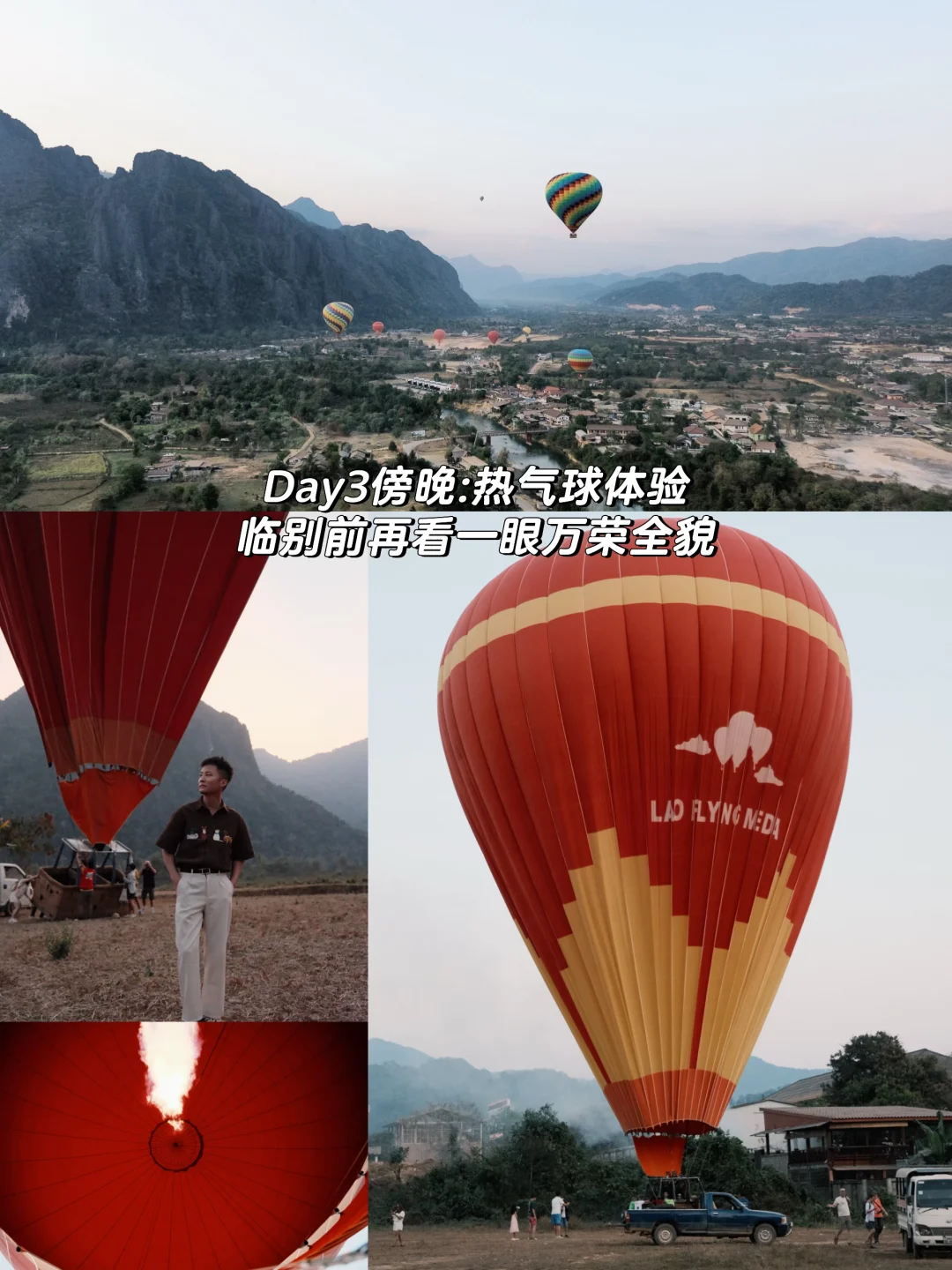 🪂有关旅行社:一日游我们选的是“老挝印象”,但发现他家态度一般,老板娘发信息不回,而且滑翔伞热气球比其他家普遍偏贵,但胜在华人公司,接的单也都是华人,不用担心太多语言问题。建议大家还是慎重选择。