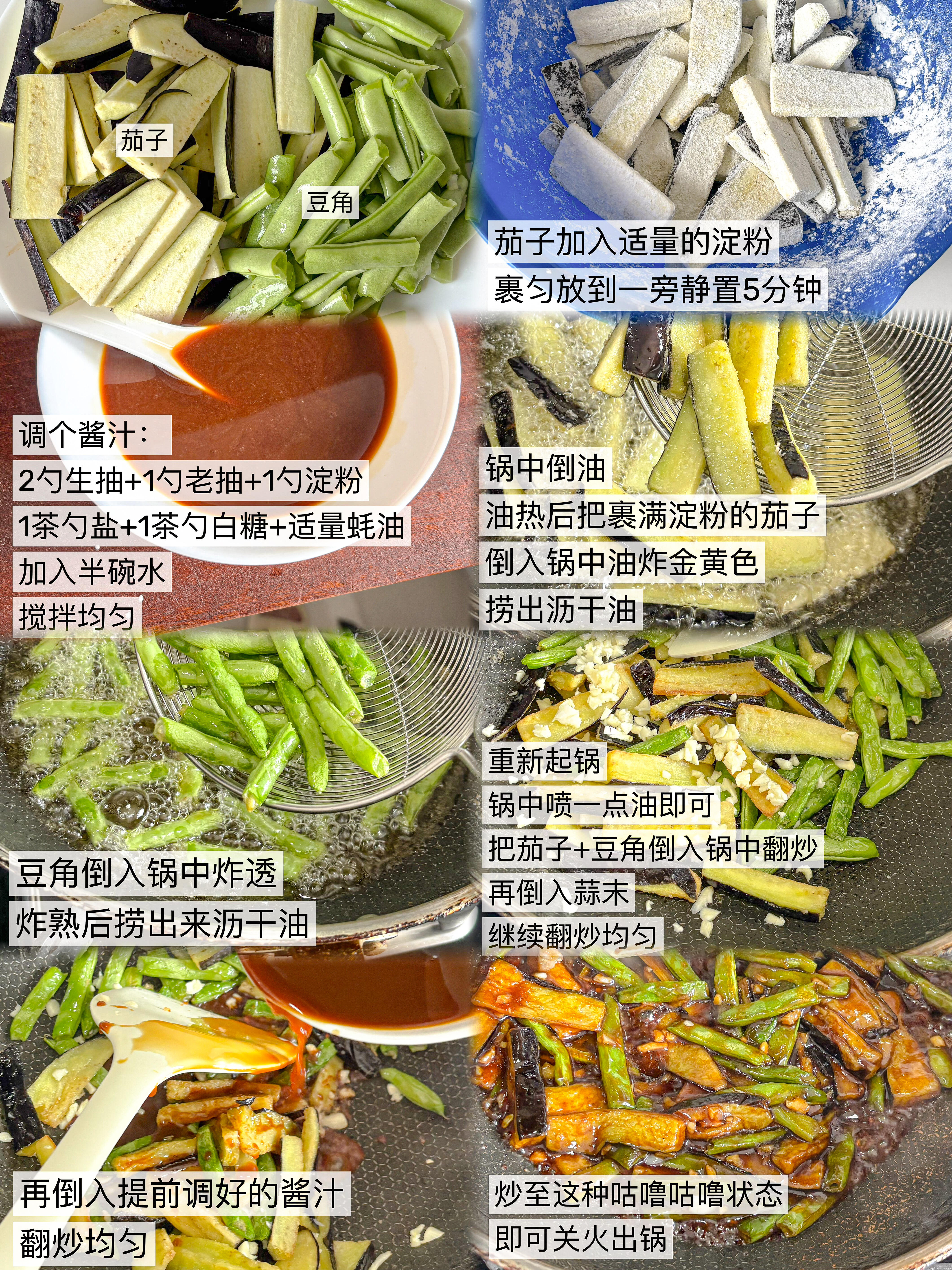 打工人下班后的续命神菜!这道茄子焖豆角,油润咸香,简直是米饭杀手!🍚 结束了一天的工作,回家就想吃口热乎下饭的。这道红烧茄子焖豆角,真的太懂打工人的胃了!茄子吸饱了汤汁,软糯入味,豆角炸过后焦香四溢,每一口都油润润的,拌着米饭吃,我一口气能炫两大碗!做法巨简单,有手就会!👇 ✅ 食材准备 长茄子1根、豆角1把、蒜末适量(蒜香浓郁才好吃)。 ✅ 灵魂酱汁 这道菜的味道全靠这碗汁:碗中加入2勺生抽、1勺老抽、1勺淀粉、1茶勺盐、1茶勺白糖、适量蚝油,最后倒入半碗水搅拌均匀备用。 ✅ 做法步骤 详细教程看图3!但有个关键点一定要记住: 茄子裹淀粉!这一步千万别省,不仅能锁住茄子水分,还能有效减少吸油,做出来的茄子软嫩不油腻,口感绝了! 这道菜我真是做了N次,每次都能光盘。咸甜适口,酱香浓郁,一个人吃也要好好吃饭,今晚就安排上吧!