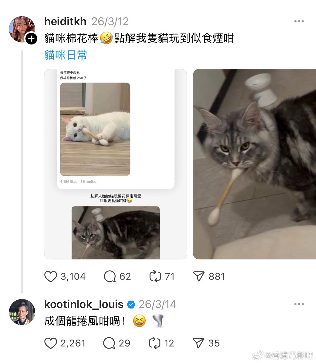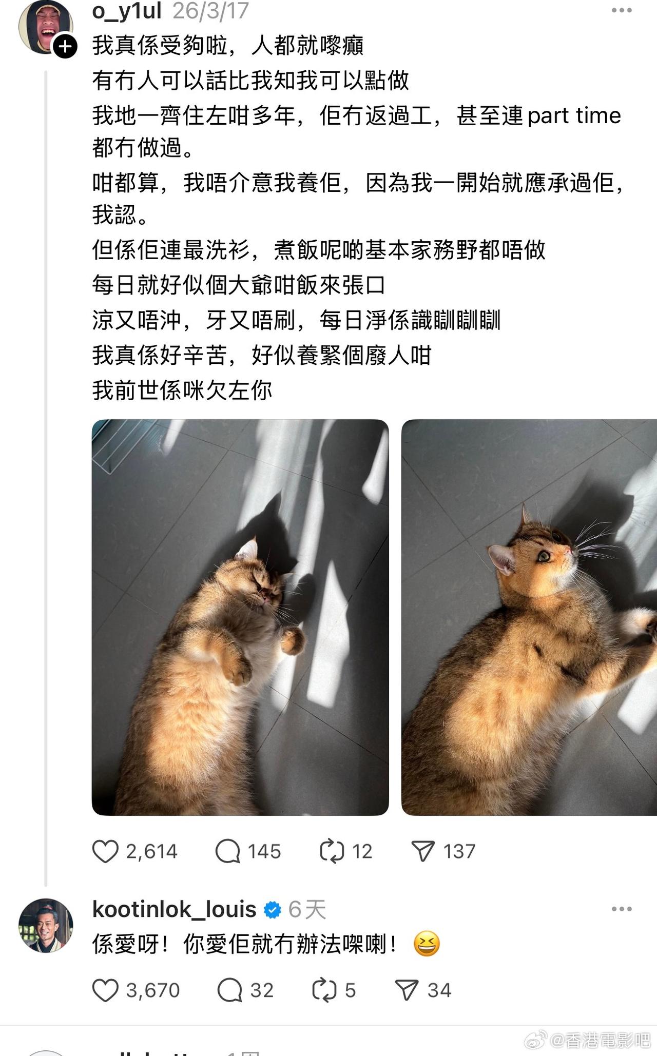 古天乐每天两眼一睁就开始上网撸猫🐱