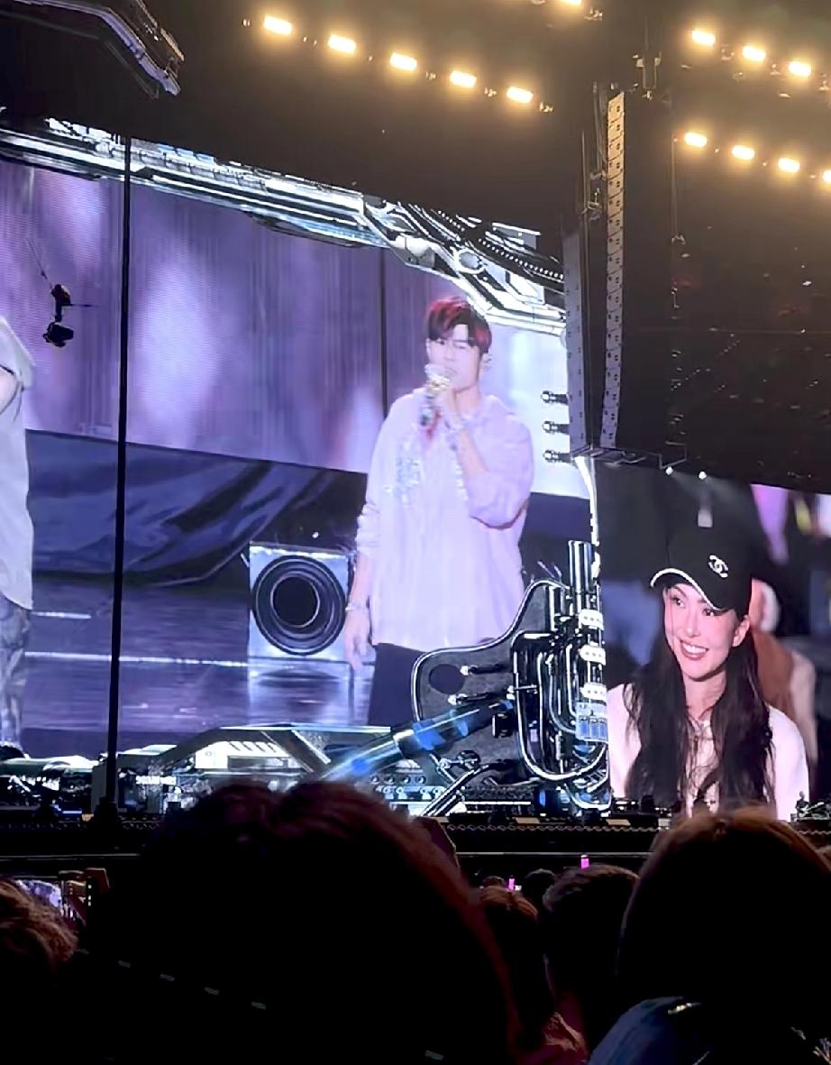 4月4日,周杰伦杭州演唱会第2场给昆凌来了一个特写,二人居然同框了,昆凌像少女似地脸上有娇羞,竟然笑得不好意思低下了头。 昆凌真是幸福啊,这样子完全看不出来是生过孩三个孩子的人,她一直跟着周杰伦,是周杰伦重要的生活伴侣。 前一天晚上的第1场昆凌来了,当时她坐在第1排,由于下雨了,周杰伦并没有跟她互动,也没有给她特写。 这次第2场时,周杰伦特意把昆凌晒在了大屏上,昆凌脸上妆容精致特别像芭比娃娃,很有混血儿的气质。 昆凌看到自己上了大屏幕,竟然有点不好意思,笑着低下了头,其实她内心是非常甜蜜的。