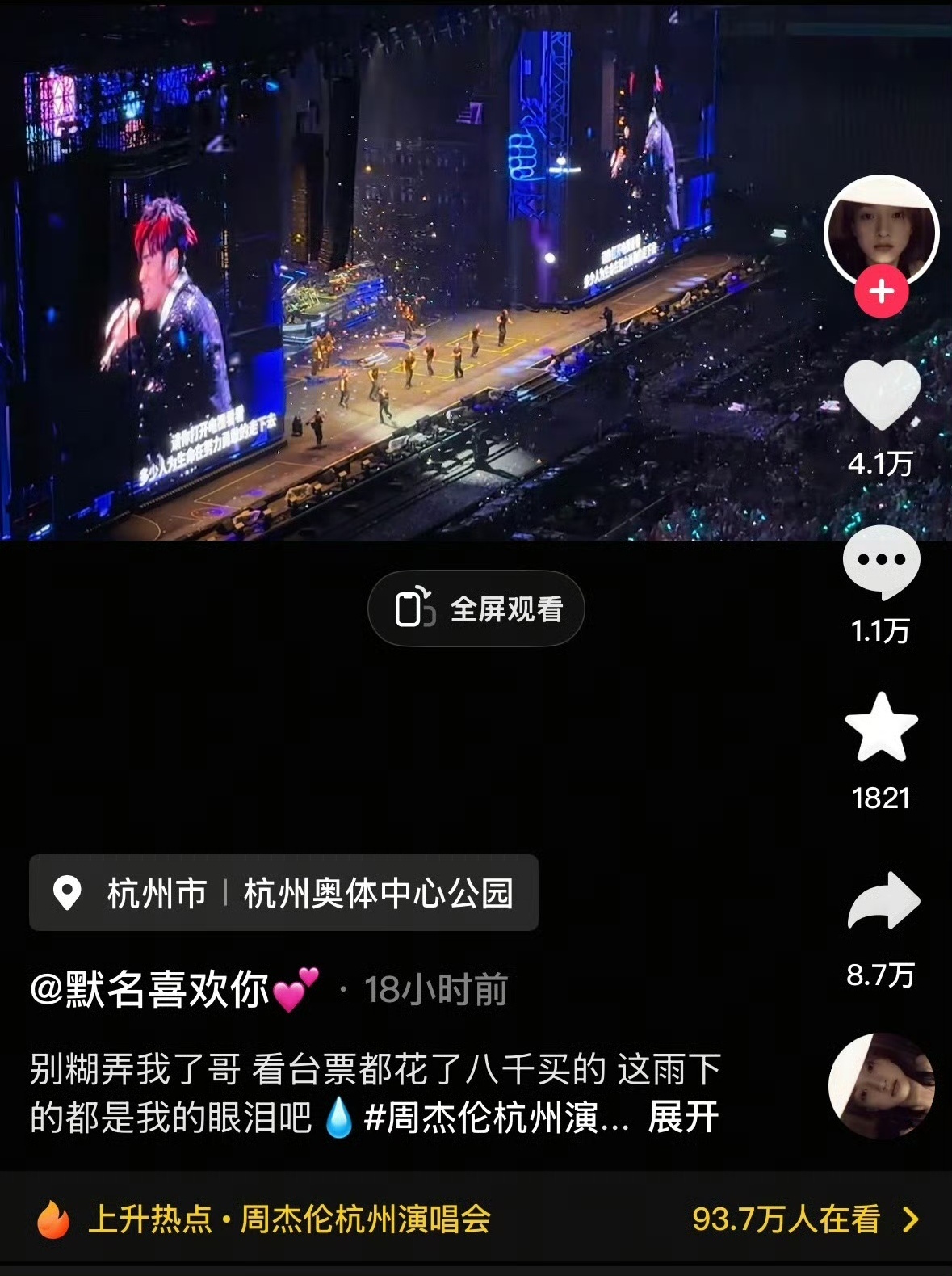 4月3日晚,杭州奥体中心体育场,暴雨中的周杰伦杭州演唱会,引发了众多歌迷的不满,
