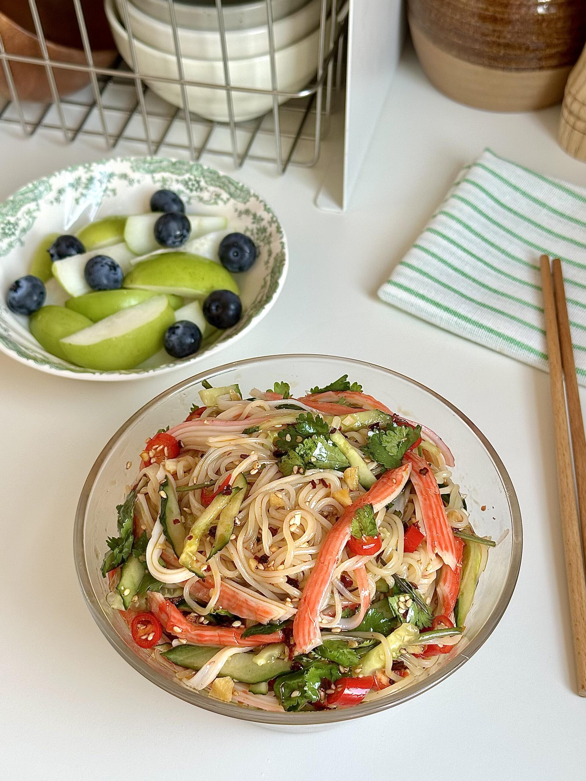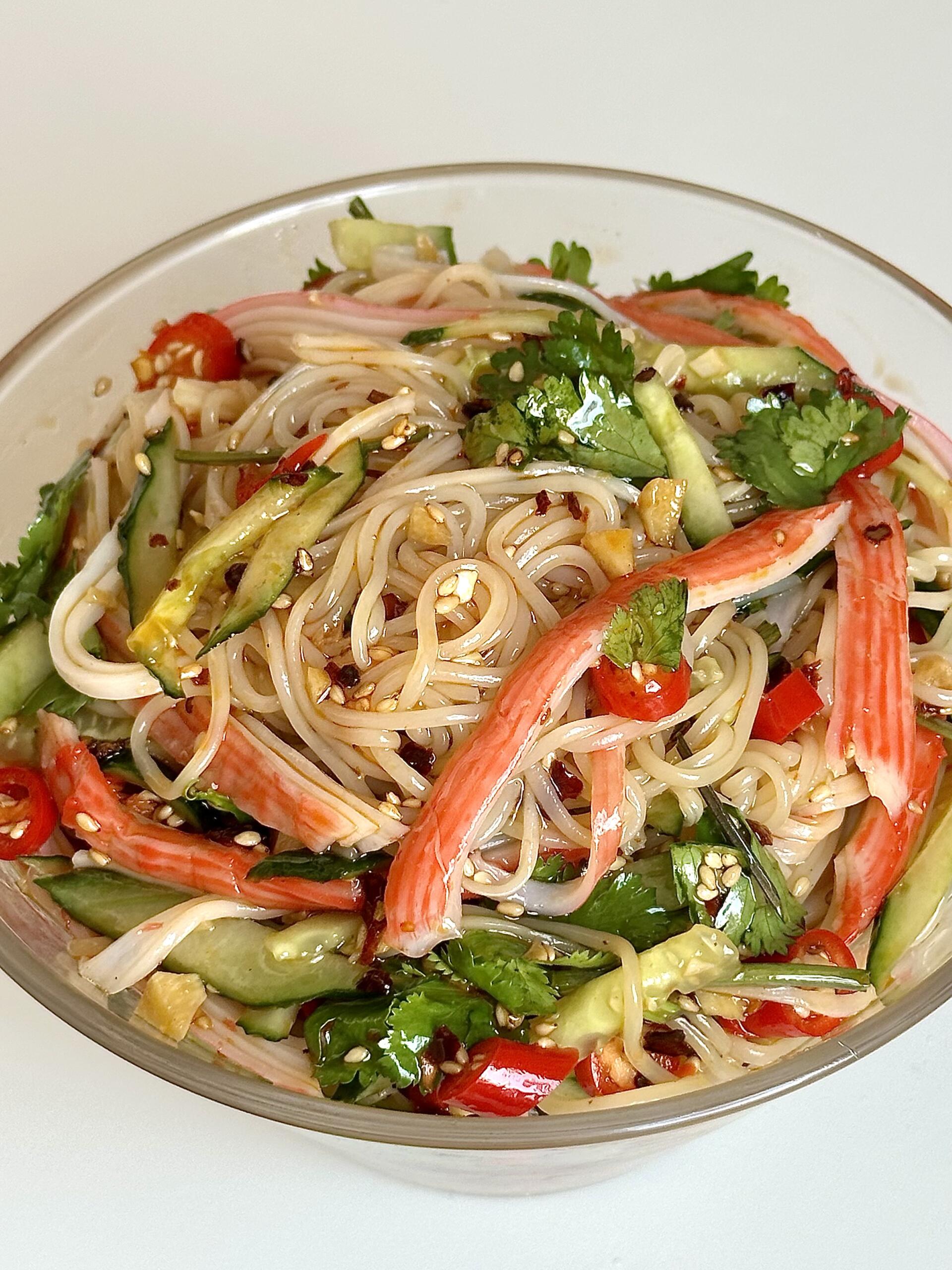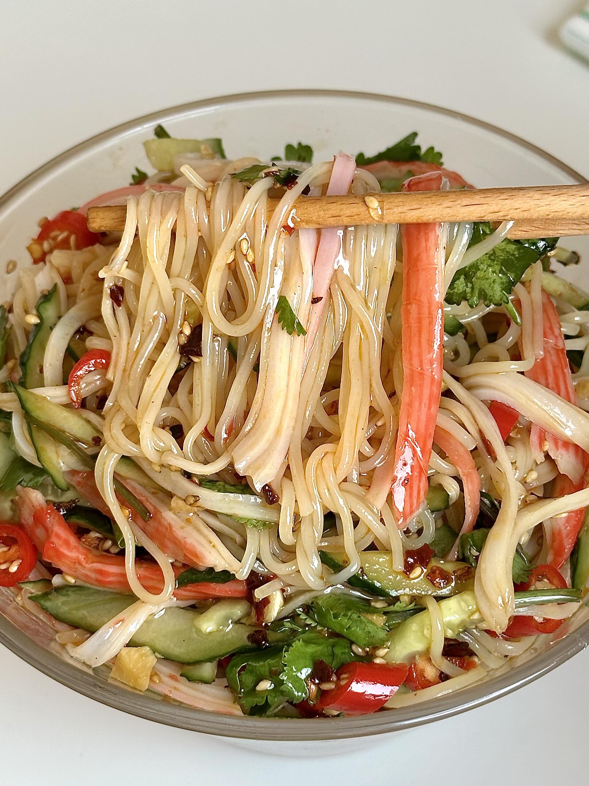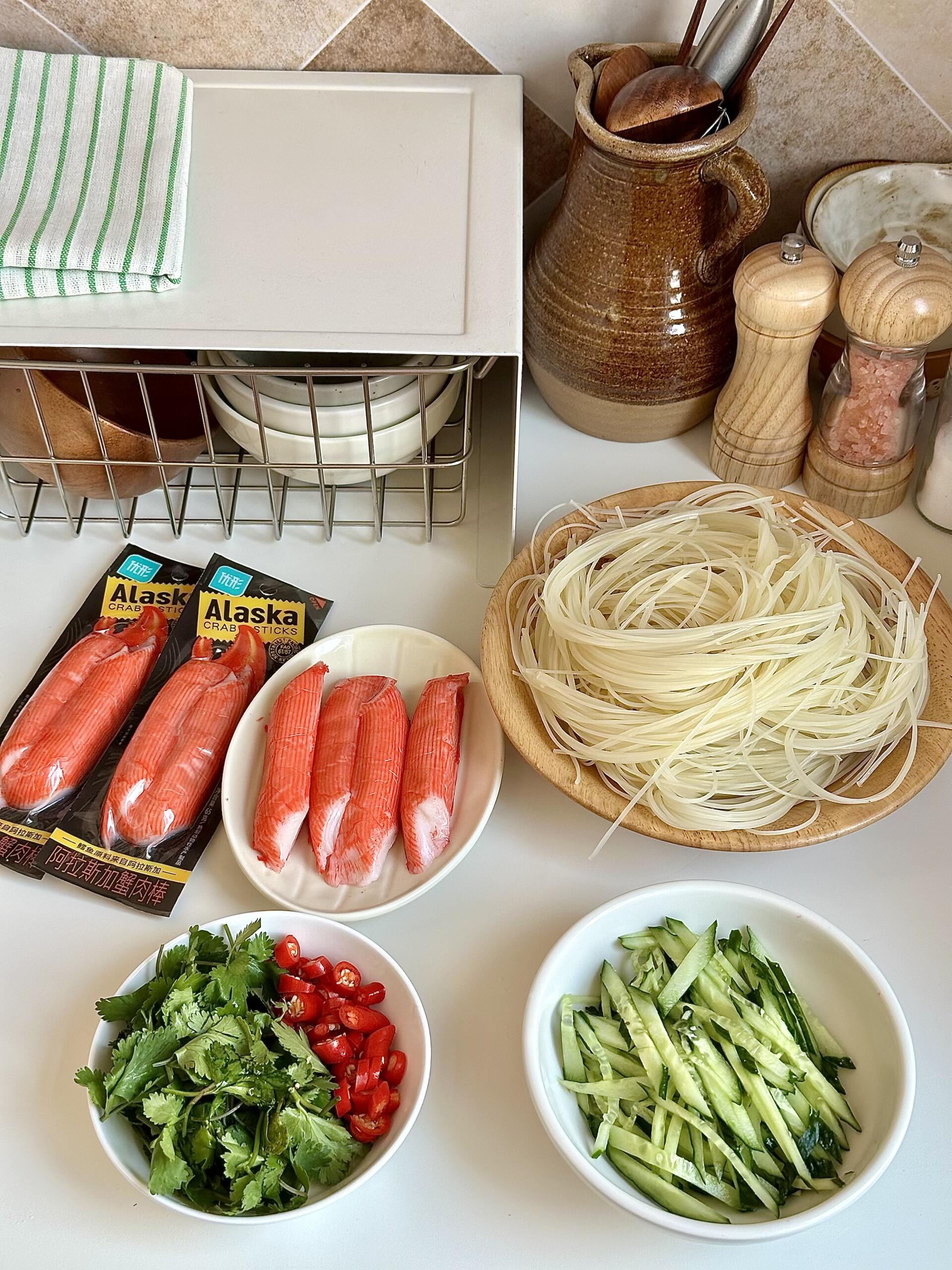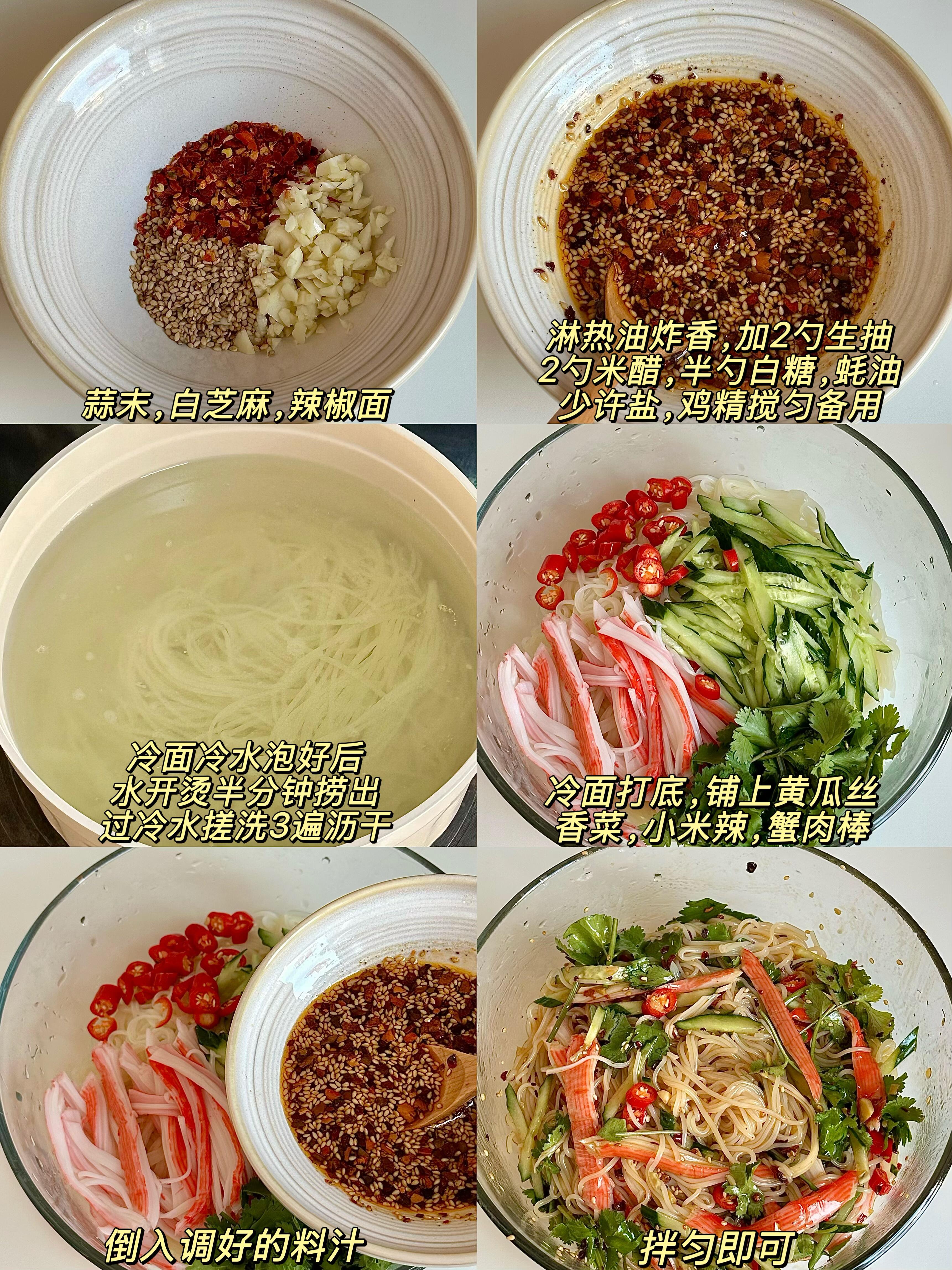 天气一热就馋这口!黄瓜蟹柳拌面,清爽解腻,好吃到嗦筷子!🍜 春天来了,胃口也醒了,就惦记这一口爽滑劲道的凉面。清脆的黄瓜丝🥒搭配鲜甜的蟹柳🦀,每一根面条都裹满了酸辣料汁,吸溜一口下去,筋道又过瘾,简直是春日餐桌上的“解腻神器”! 👩🏻🍳 做法巨简单,看一遍就会: 1️⃣ 调制灵魂料汁 碗里放蒜末、白芝麻、辣椒面,淋上一勺热油激发出香味。接着加2勺生抽、2勺米醋、半勺白糖、半勺蚝油,再加少许盐和鸡精,搅拌均匀备用。 2️⃣ 处理面条 冷面提前泡软,水开后下锅烫30秒迅速捞出。立刻过一遍冰水,搓洗两遍,沥干水分,这样处理后的面条口感超级Q弹! 3️⃣ 拌匀开吃 碗底铺上冷面,码上黄瓜丝、香菜段、小米辣圈,再撕上蟹肉棒,最后淋上调好的料汁,搅拌均匀即可。 这一碗真的太适合懒人了,不用在厨房久待,几分钟就能搞定,酸辣开胃,吃完浑身舒畅!