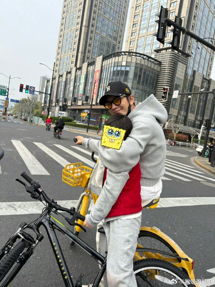 黄晓明小海绵骑行照黄晓明晒和儿子春日骑行照黄晓明发文晒和儿子春日骑行照,小海绵长