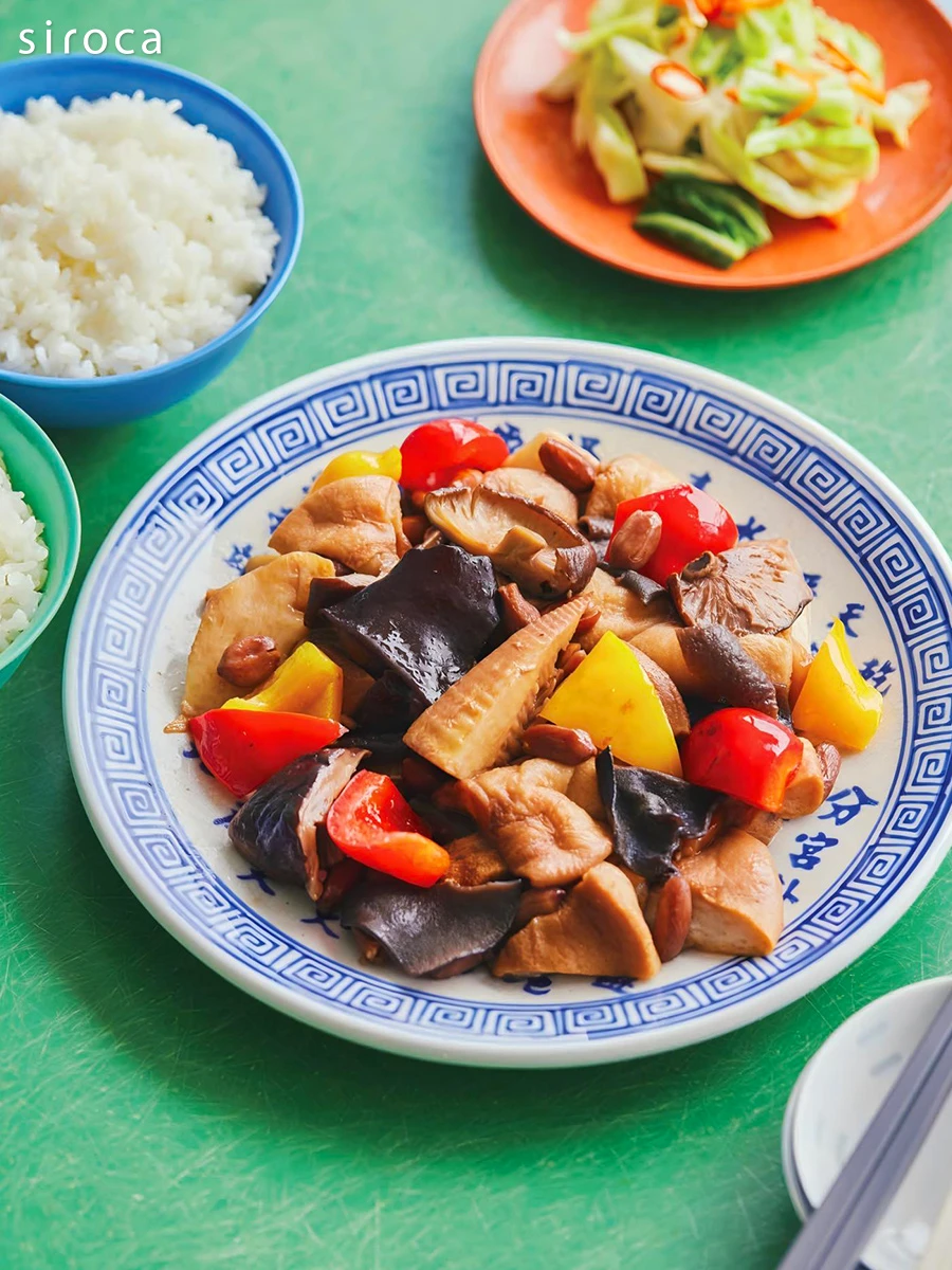 1️⃣ 花生热水浸泡去皮;木耳泡发切小块;香菇泡软切两半;竹笋切块;甜椒切片