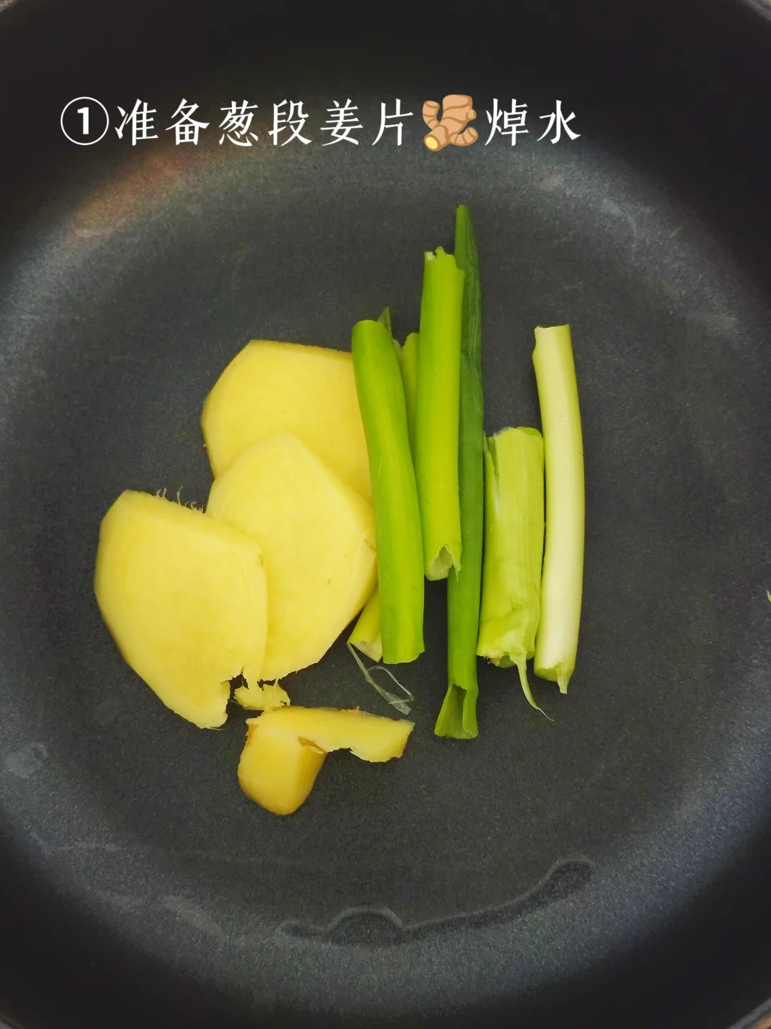 1️⃣准备好葱段姜片,焯水。