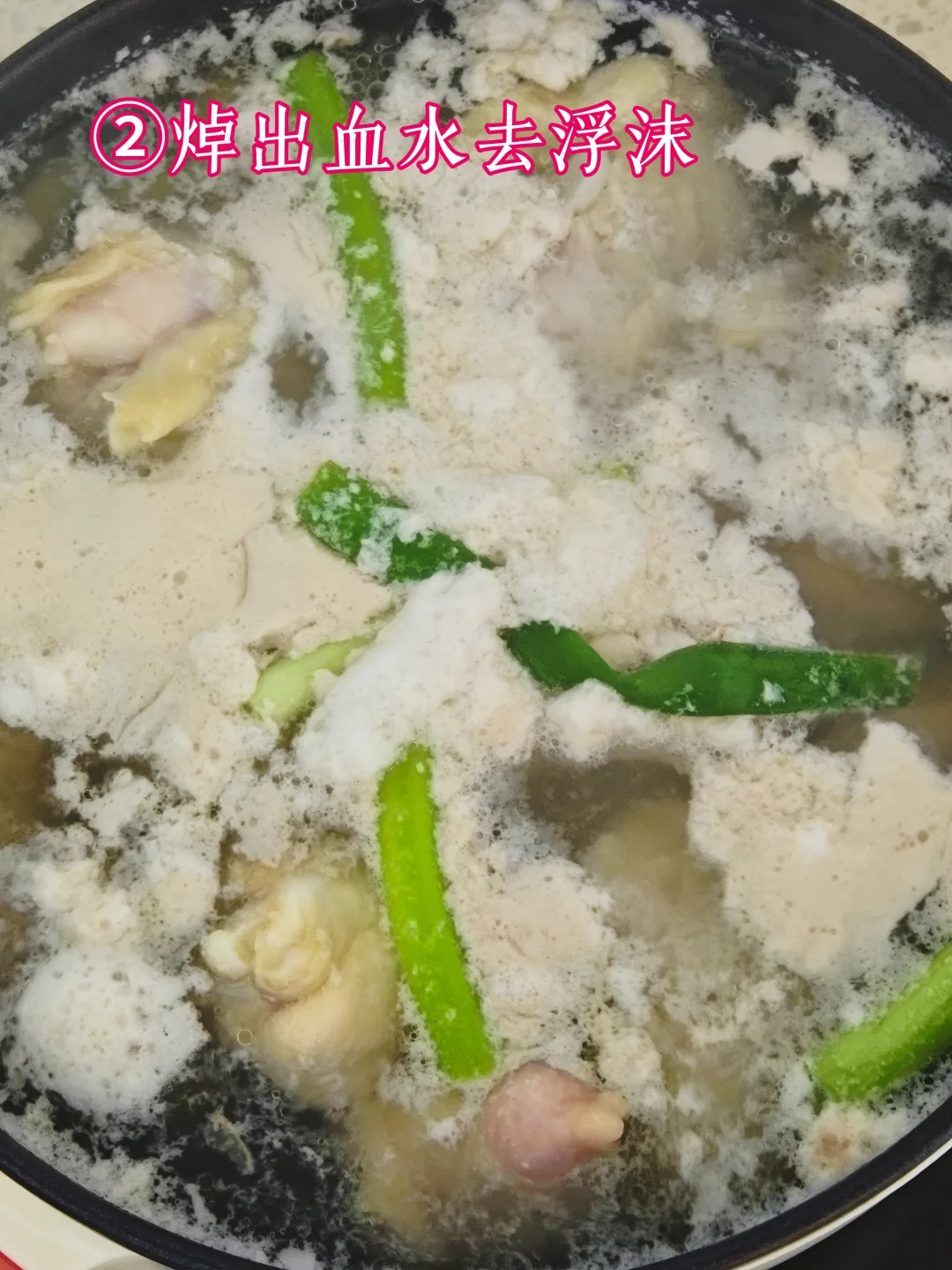 2️⃣煮熟之后去浮沫。