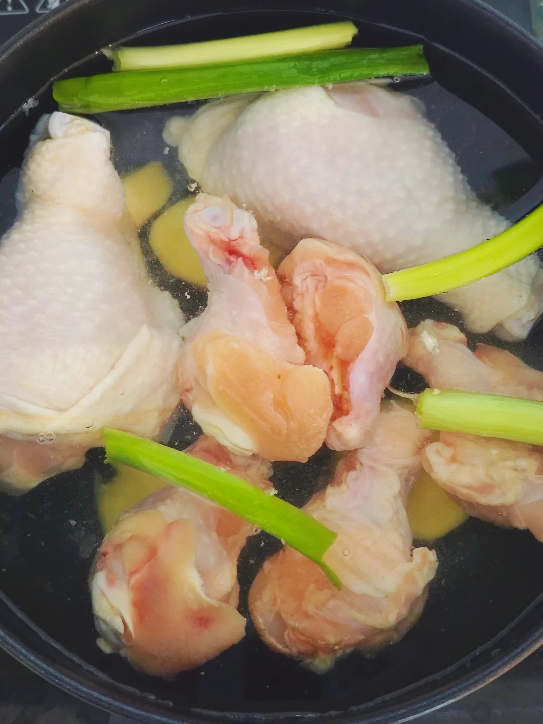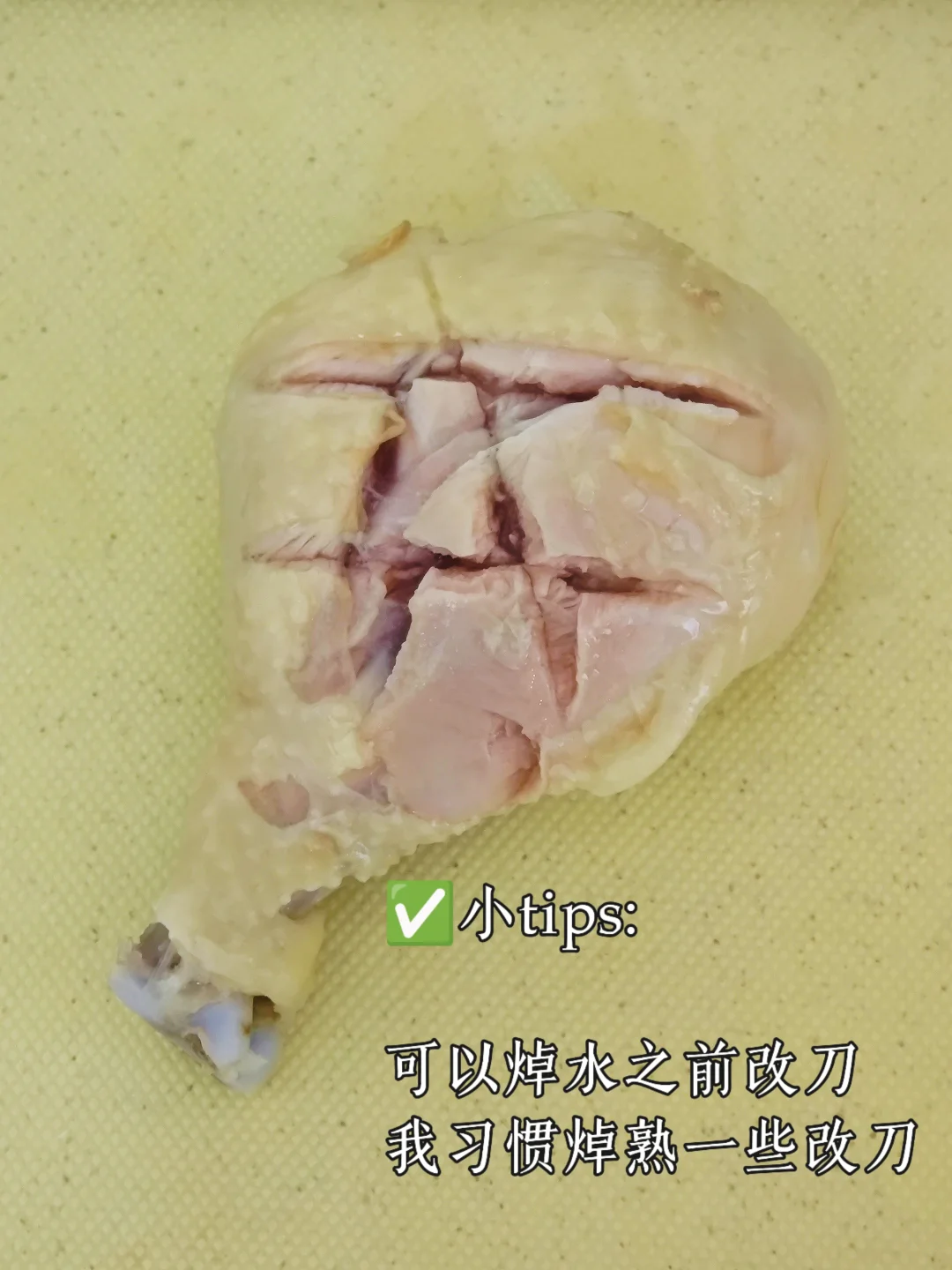 3️⃣鸡腿捞出,热水冲洗,我习惯煮熟之后改花刀。