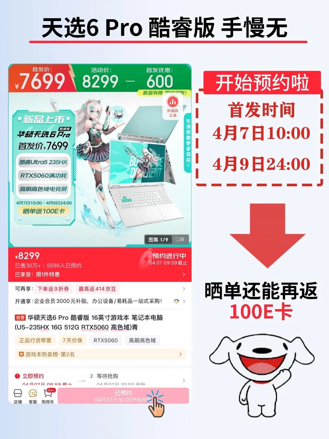 就3天,晒单还能返100元E卡,想买的记得先预约,别等开售了再想起来~