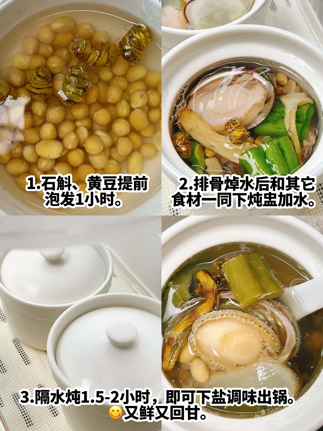 ▪️石斛、黄豆提前泡发1小时。
