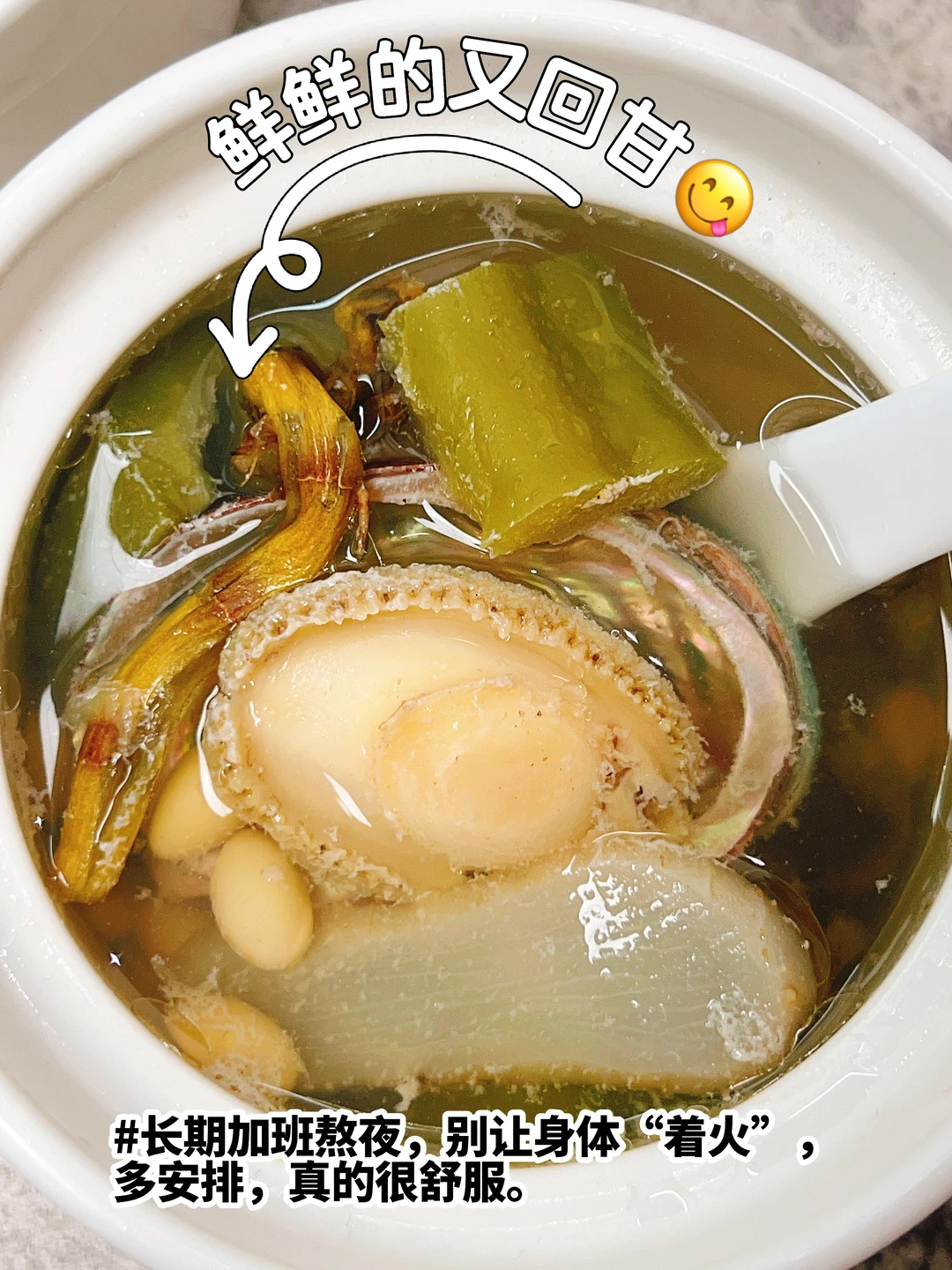 鲍鱼➕石斛➕玉竹➕苦瓜真的是熬夜汤届的搭配王牌❗️