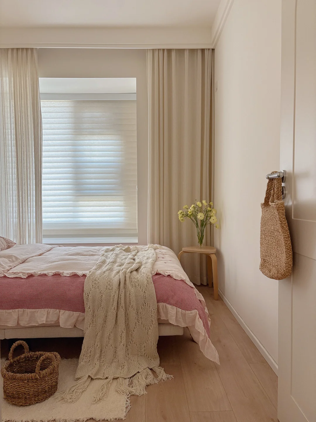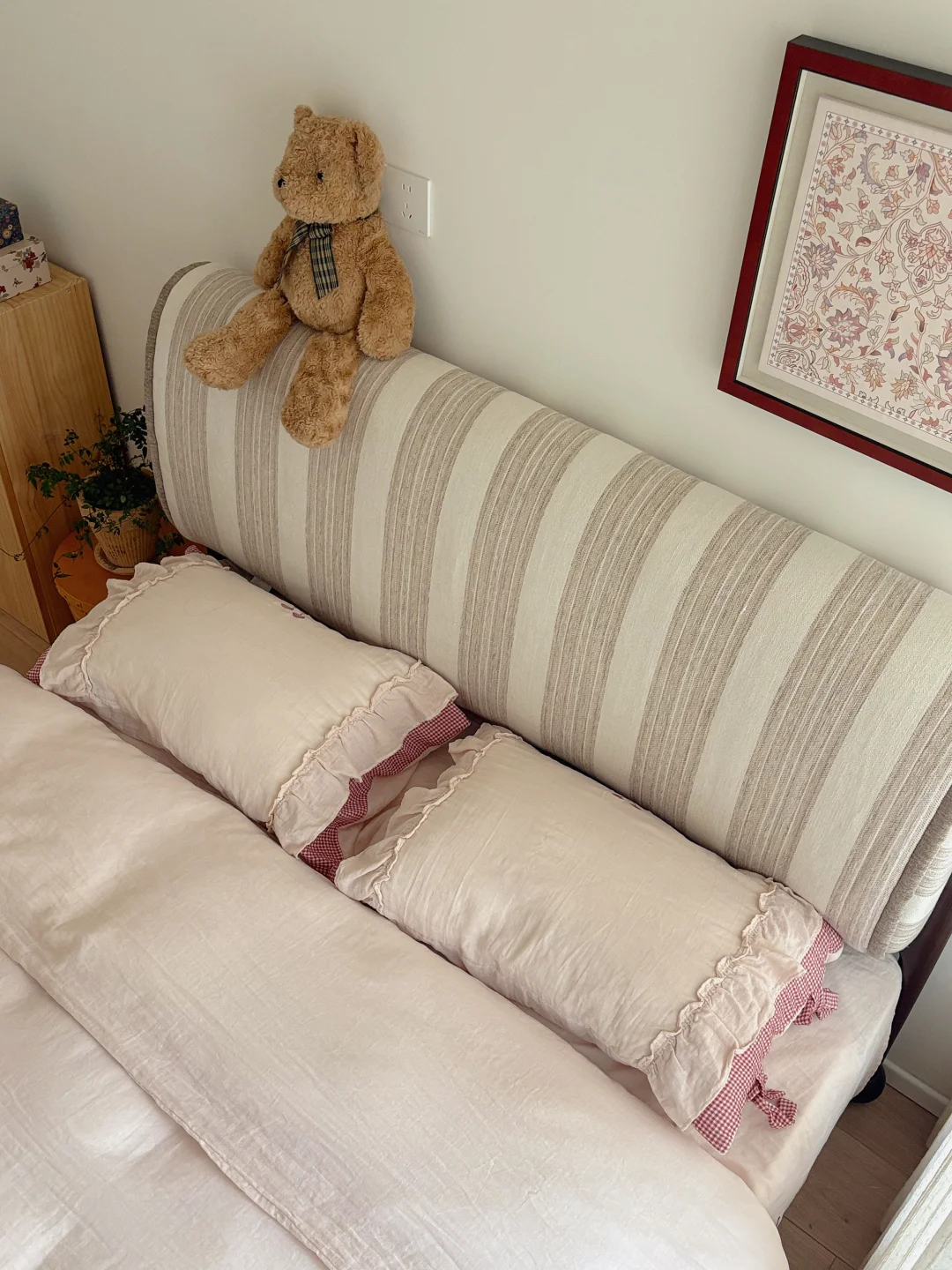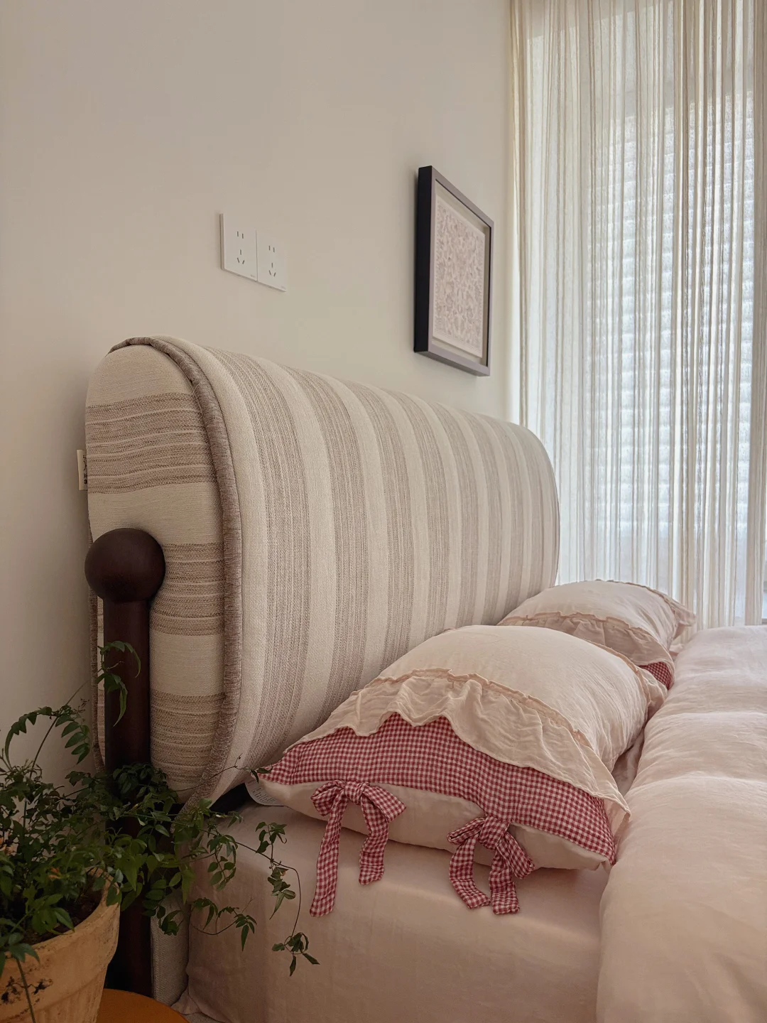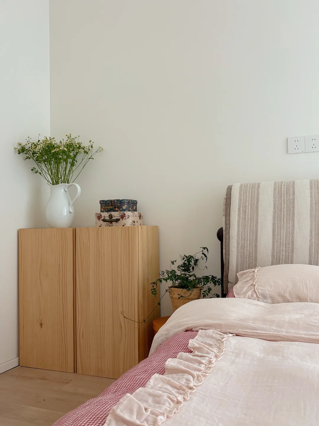 从刚换上的新鲜感到现在的日常陪伴,越睡越觉得选对了🥰 当初一眼沦陷的春枝白底色,现在看还是温柔到骨子里,天丝亚麻面料摸起来糯叽叽的,没有多余装饰,却自带一种松弛的高级感,和我家的奶fufu软装简直是天作之合。 用了一段时间才发现,品质是真的靠谱: • 加密实木排骨架真的稳,半夜翻身、娃蹦跳都听不到一点异响,承重也完全放心,商家还承诺终身质保,安全感拉满! • 床头靠包厚实,睡前靠着玩手机超舒服,用了三个月依旧饱满,完全没有塌陷,天然的面料,也很透气,夏天用不怕闷汗 • 细节设计更是满分: ✅靠包可拆洗,脏了直接拆洗,没有清洁焦虑 ✅17cm高床脚,扫地机器人能自由穿梭,而且床脚内收,也不怕磕碰 ✅齐边设计,小户型卧室瞬间多了半平米活动空间,视觉上也更通透开阔 每天醒来都觉得卧室又大又舒服~如果你的小户型也想换一张颜值与实力并存的床,支吾原野床真的可以闭眼冲!