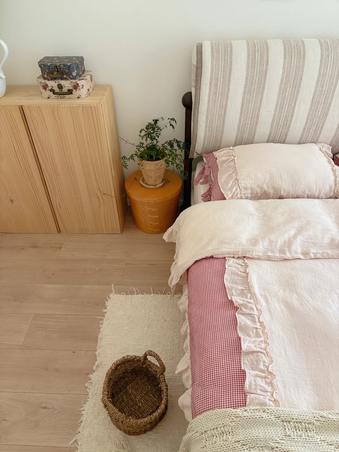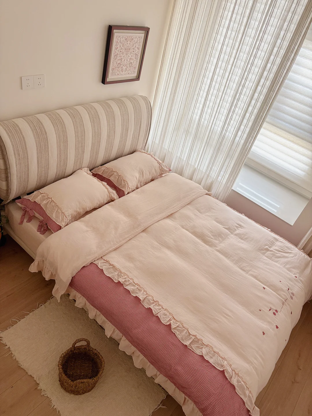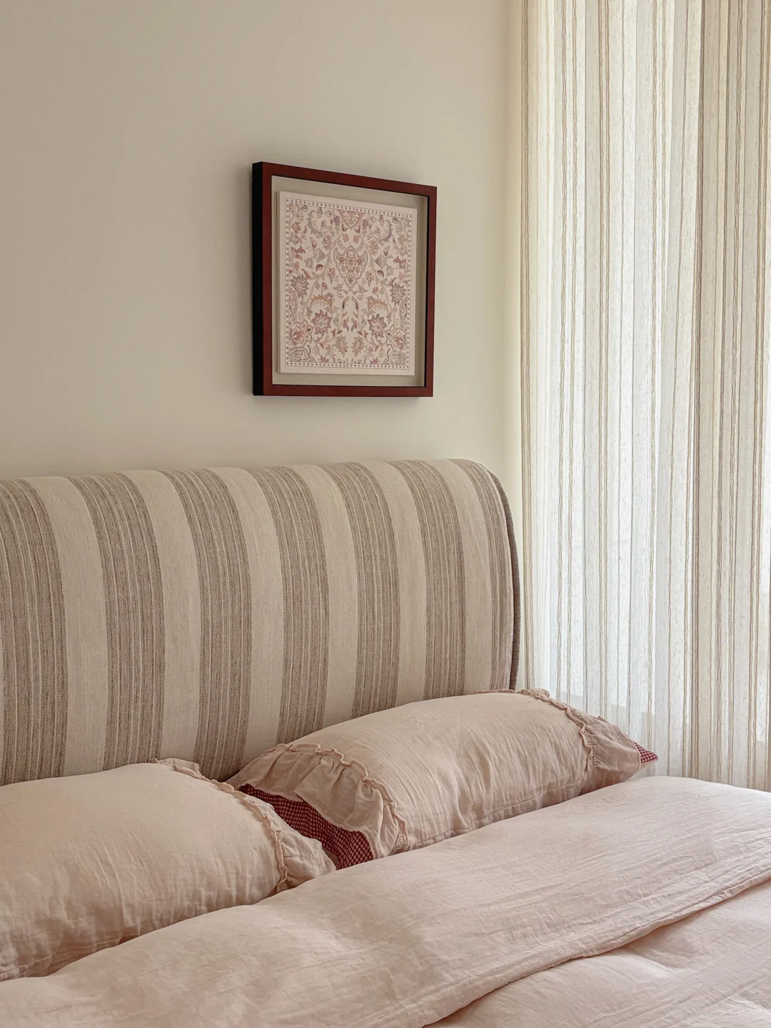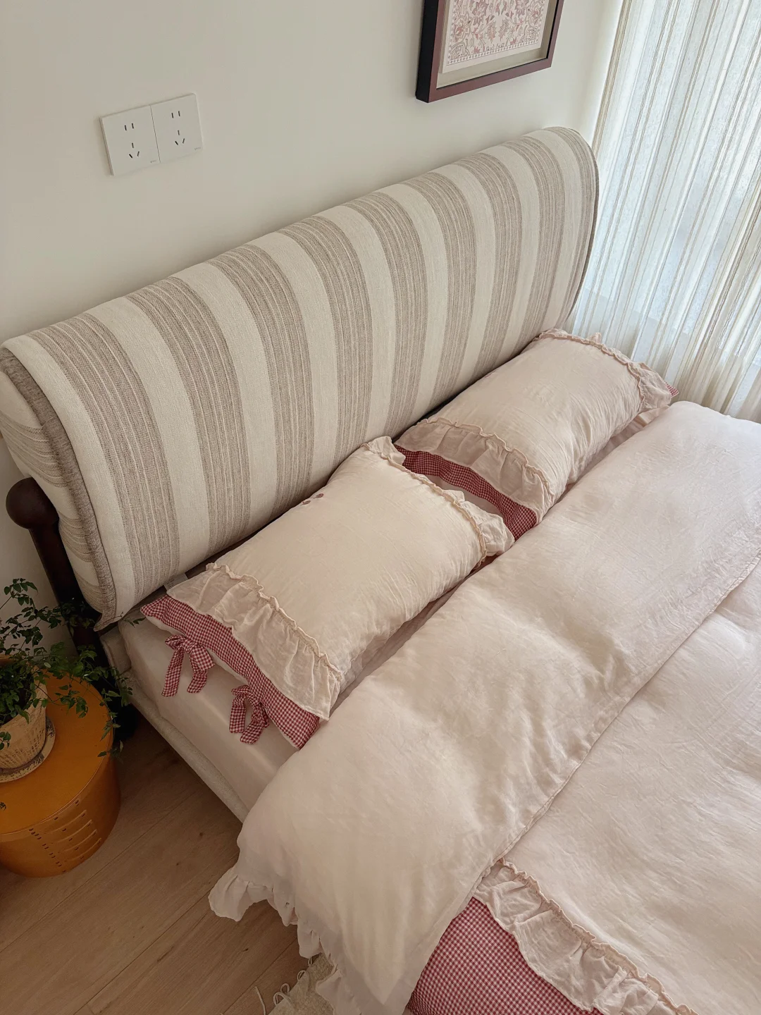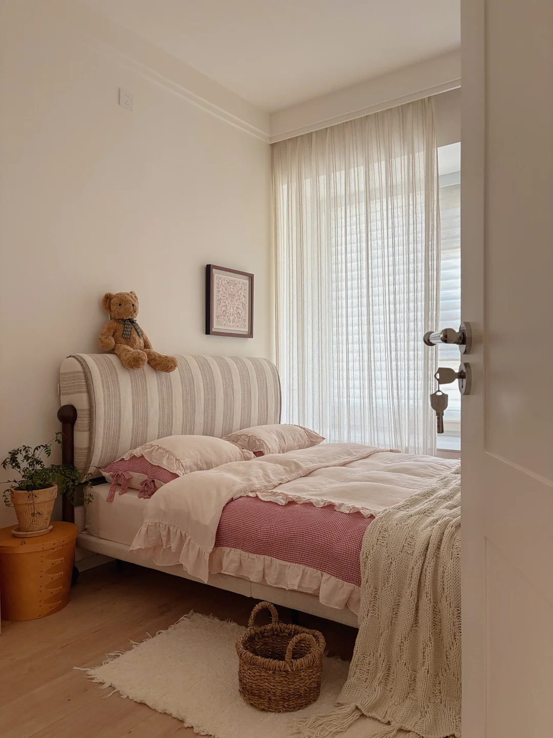 从刚换上的新鲜感到现在的日常陪伴,越睡越觉得选对了🥰 当初一眼沦陷的春枝白底色,现在看还是温柔到骨子里,天丝亚麻面料摸起来糯叽叽的,没有多余装饰,却自带一种松弛的高级感,和我家的奶fufu软装简直是天作之合。 用了一段时间才发现,品质是真的靠谱: • 加密实木排骨架真的稳,半夜翻身、娃蹦跳都听不到一点异响,承重也完全放心,商家还承诺终身质保,安全感拉满! • 床头靠包厚实,睡前靠着玩手机超舒服,用了三个月依旧饱满,完全没有塌陷,天然的面料,也很透气,夏天用不怕闷汗 • 细节设计更是满分: ✅靠包可拆洗,脏了直接拆洗,没有清洁焦虑 ✅17cm高床脚,扫地机器人能自由穿梭,而且床脚内收,也不怕磕碰 ✅齐边设计,小户型卧室瞬间多了半平米活动空间,视觉上也更通透开阔 每天醒来都觉得卧室又大又舒服~如果你的小户型也想换一张颜值与实力并存的床,支吾原野床真的可以闭眼冲!