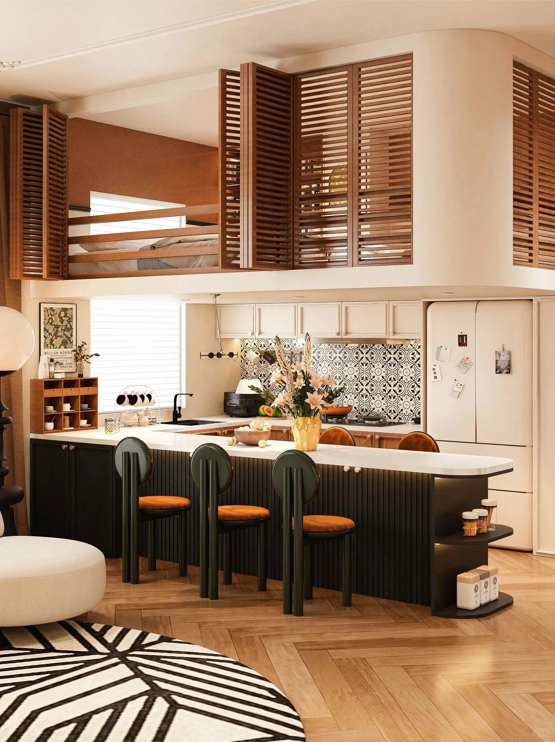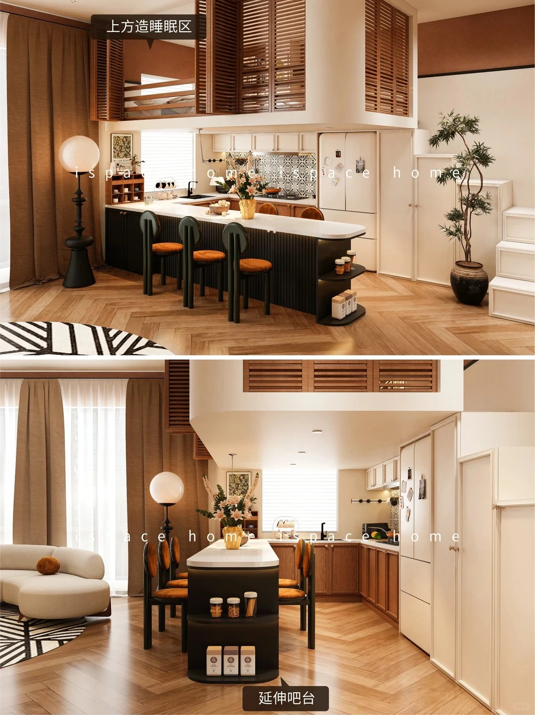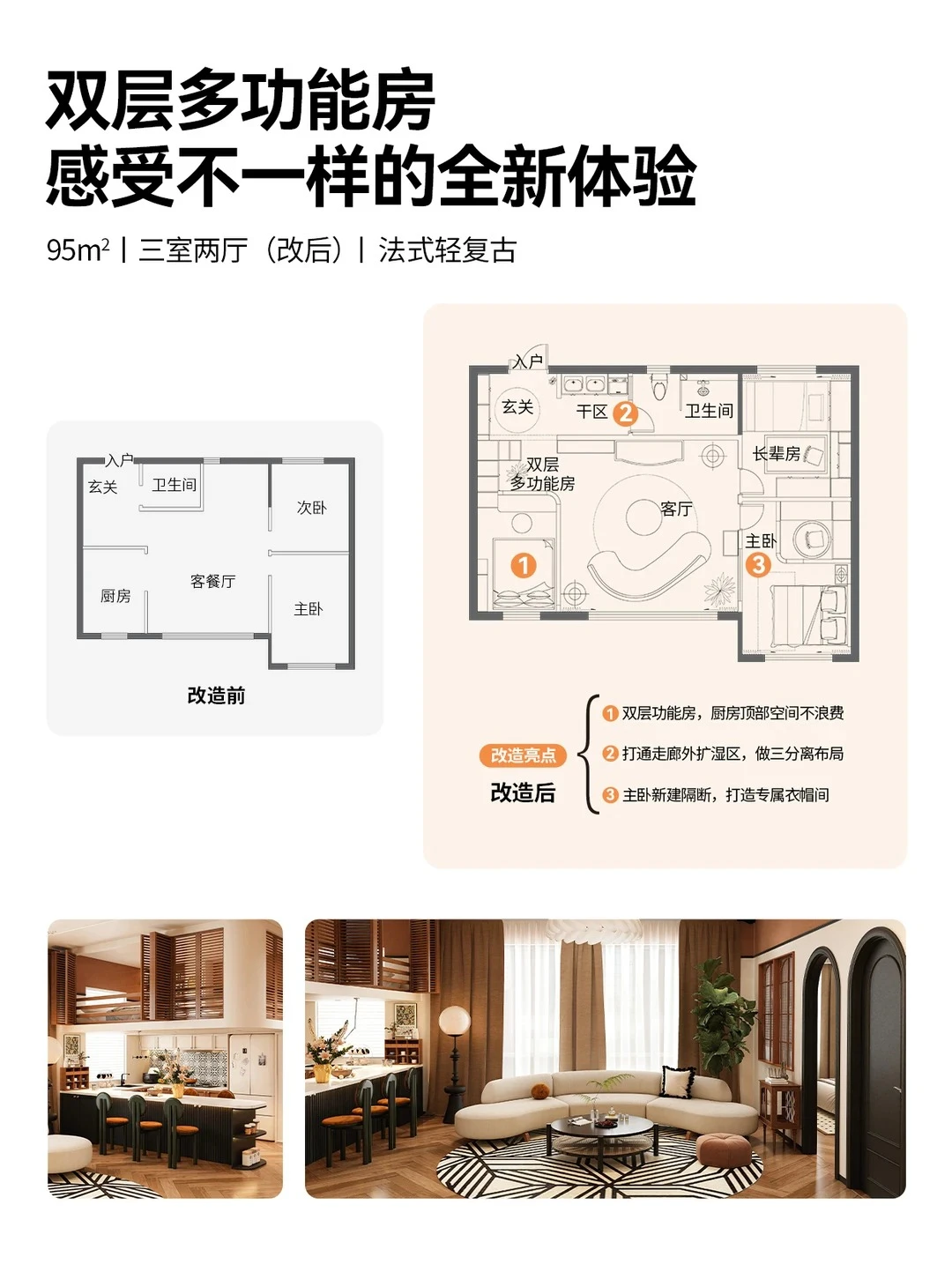 哈喽我是锦珊~装修公司打工人上线啦👋 装修旺季🔥给大家分享一套旧房翻新案例✌️ - 🏠屋主画像 ▪三代人,90后夫妻俩+父母+女儿👧 ▪女儿要拥有自己的独立空间💤 ▪主卧空间单调,想增加处衣帽间👗 ▪希望能够扩大卫生间的使用范围🫧 - ✅为了满足屋主需求,我做了: ▪厨房上空造隔断+折叠窗,不仅能满足女儿对独立空间的需求,还能更好地让空气流通~储物式阶梯,还大大增加了收纳空间🍃 - ▪主卧角落新建隔墙造衣帽间,划分动静双区,内嵌组合柜可以满足四季衣物的储存🥳采用磨砂玻璃增加室内采光,还能保护个人隐私🔆 - ▪为了解决卫生间拥挤问题,将湿区外扩至走廊🧼干区做双台盆,洗漱家政一体,实现空间的多元化使用👏 - 到店咨询➡沟通需求➡上门量房 出平面方案➡画效果图➡开工~ 从设计到落地我都会全程陪伴哦 想看落地效果的朋友记得蹲我的更新噢❤ - 我是设计师锦珊 分享的案例均为原创作品~ 喜欢的朋友们记得关注我哦‼ 有装修上的问题也可以给我留言 我看到都会给大家解答的🤗 -