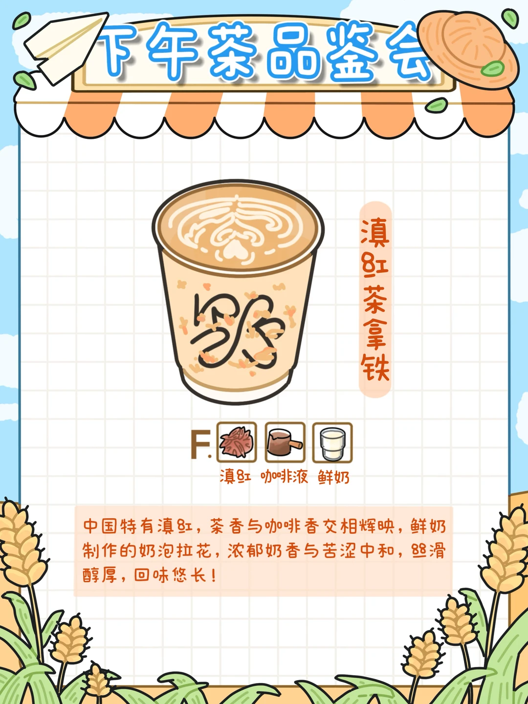 “加入中国特有的滇红🍂,茶香与咖啡香气交相辉映,鲜奶制作的奶泡进行拉花,浓郁奶香与苦涩中和,丝滑醇厚”