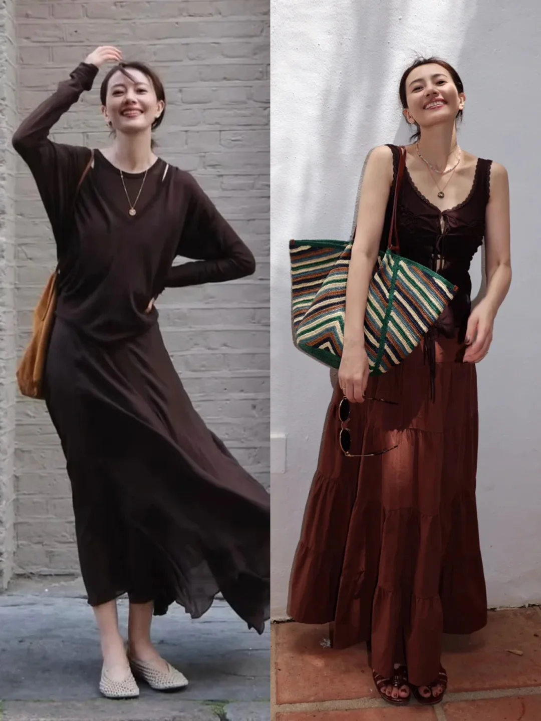 高圆圆这组穿搭太有松弛感了高圆圆这身也太稳了!🤎深咖针织衫配卡其色阔腿